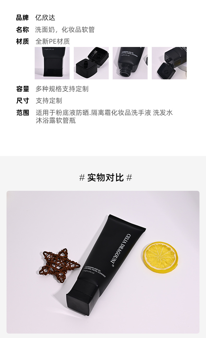 スポット洗顔料分装ホース黒色化粧品プラスチック中空管包材カバー押出日焼け止め隔離クリーム管