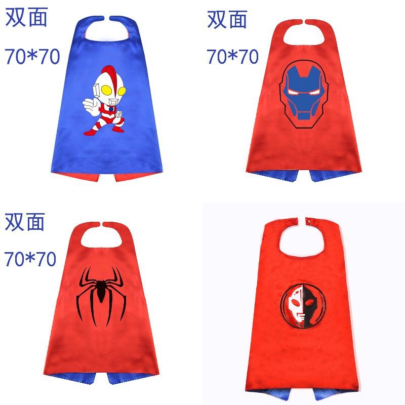 万圣节儿童超级英雄印花动漫披风蜘蛛侠奥特曼美国队长衣服装扮