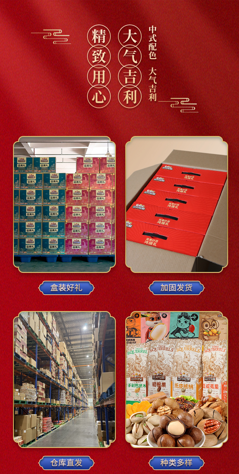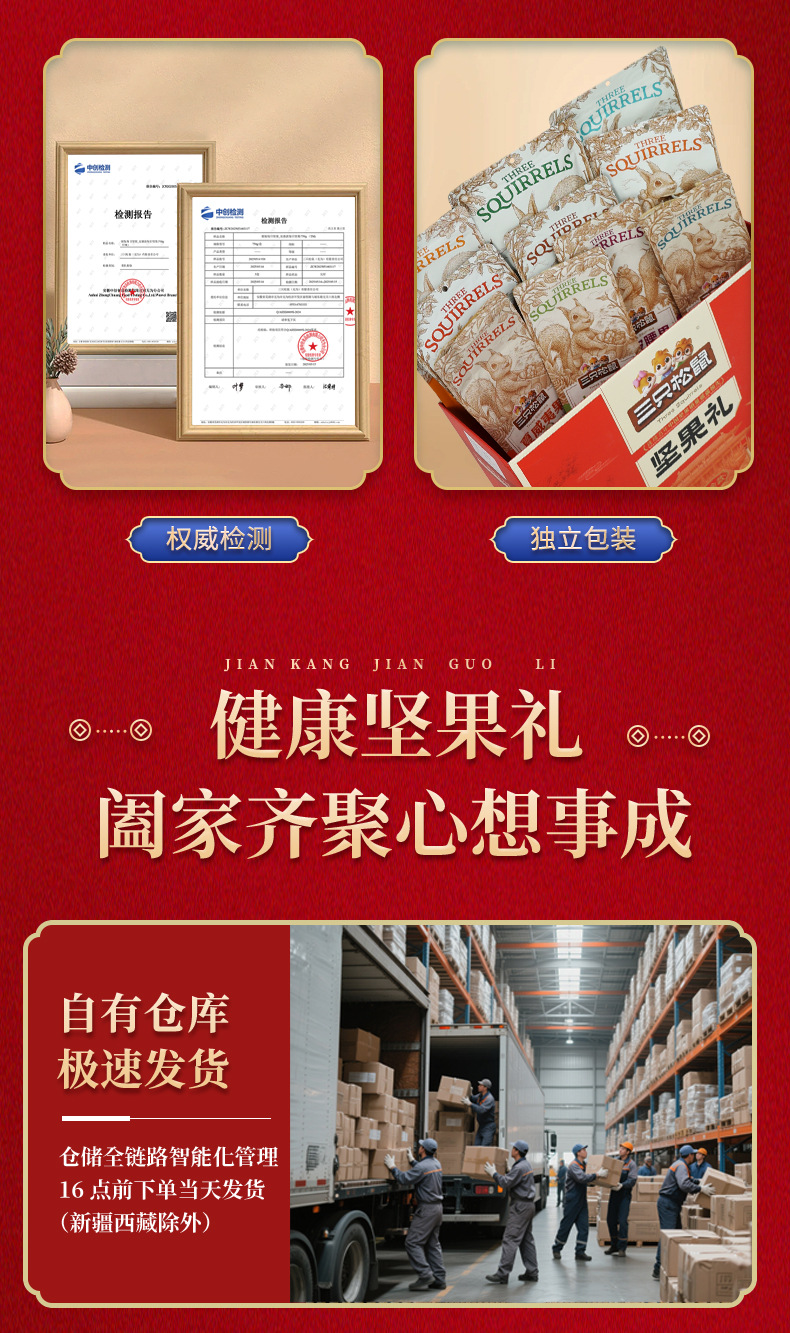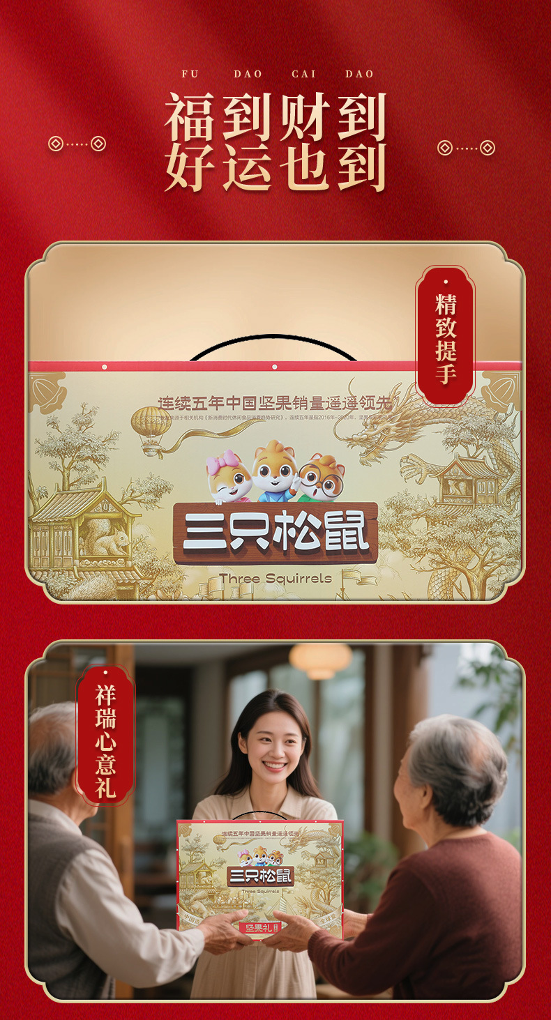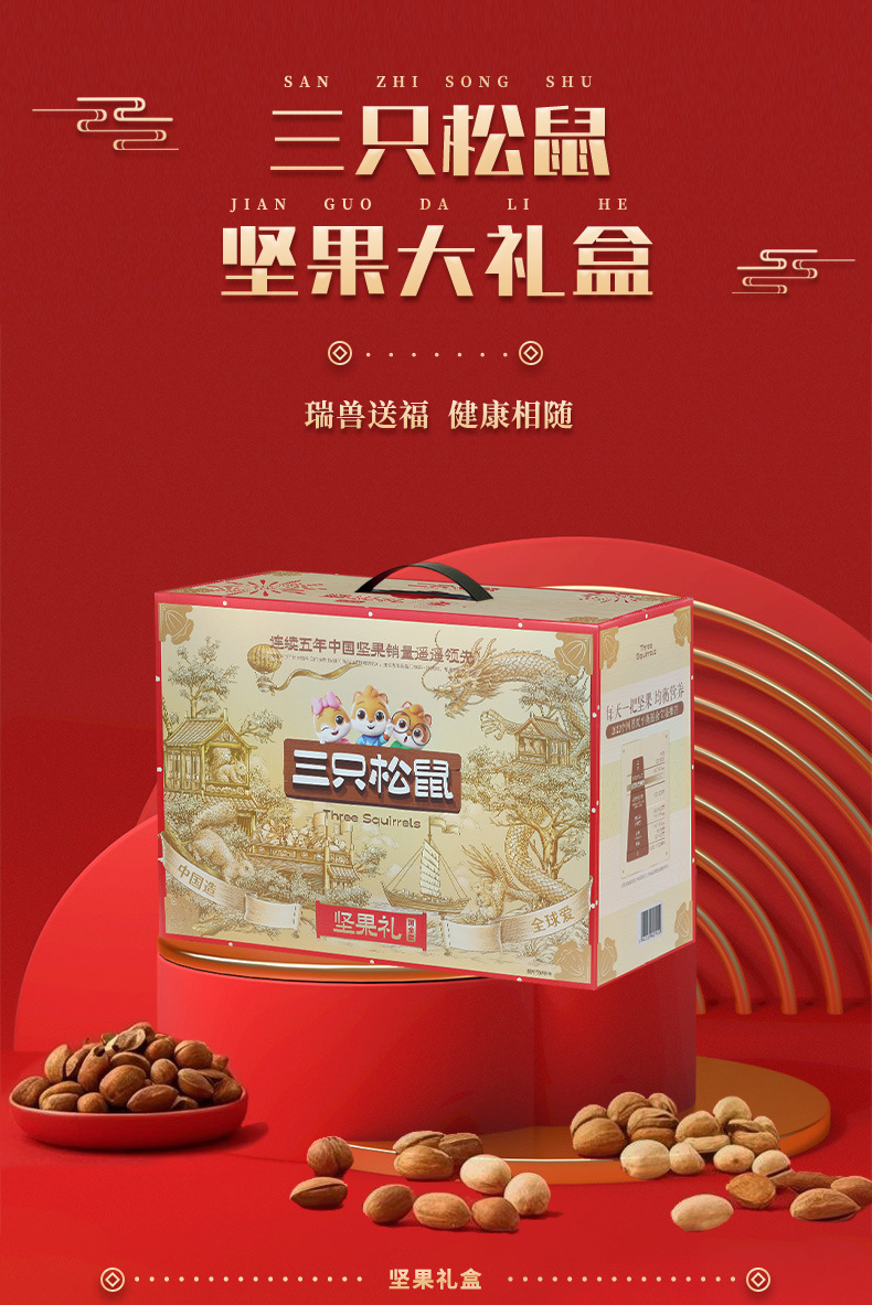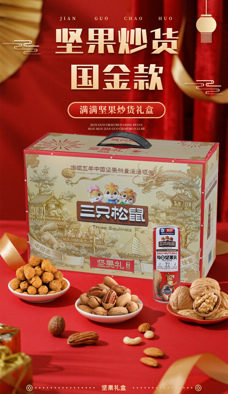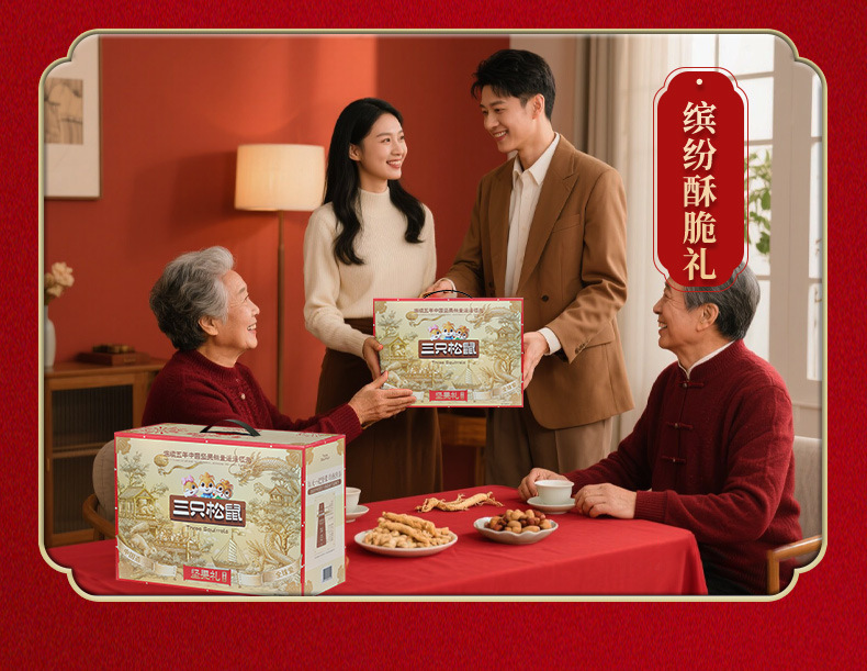 リスナッツ3匹のギフトボックス国金金1920g/16袋の純粋なナッツスナックのギフトボックス