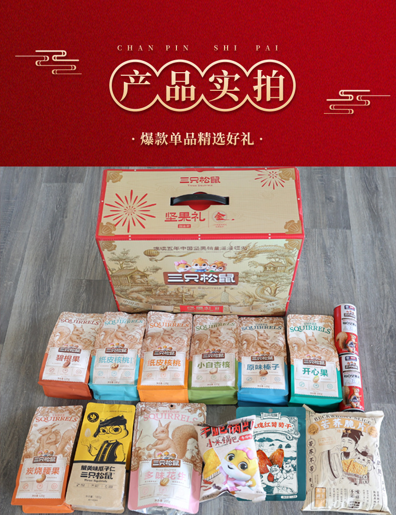 三只松鼠ナッツギフトボックス 2230g/15袋入り スナックギフトパック ナッツギフトボックス ホリデー用フルボックス食品