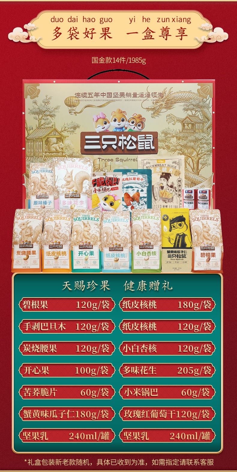 リスナッツ三匹大礼箱1985g/14袋入り間食大包ナッツ礼箱祝日礼箱共同購入