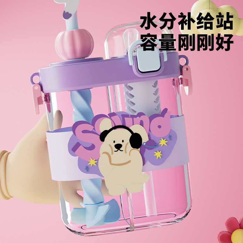 大容量子供用コップ夏新型2024コップ小学生通学専用女子ストローコップ二重飲みコップ