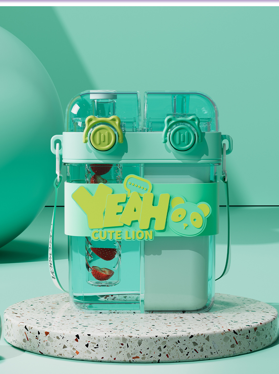 子供ストローカップ大容量分格双飲杯学生高颜値全身カップ女子学生夏携帯カップ