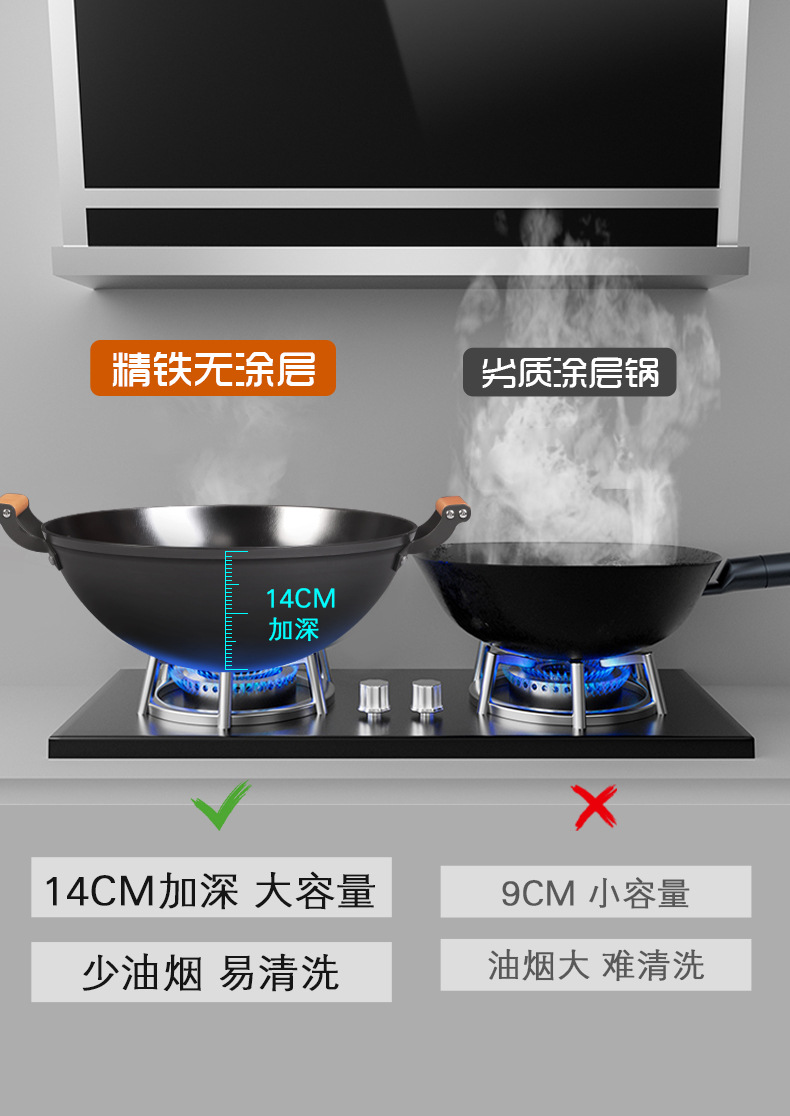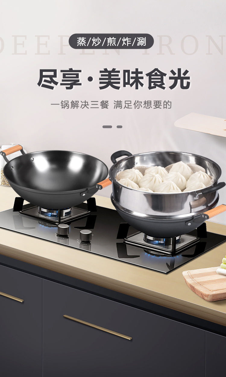双耳鉄鍋炒め鍋家庭用の古い鉄鍋を厚くして電磁ストーブ専用炒め鍋を深くしてフライパンにくっつかない