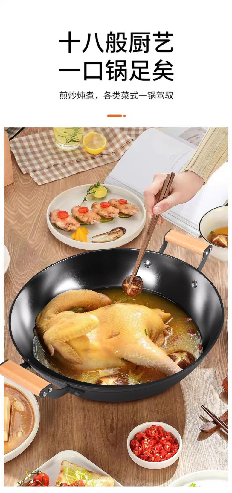 双耳鉄鍋炒め鍋旧式鋳鉄鍋家庭用無コーティングガス電磁炉平底専用深み炒め鍋