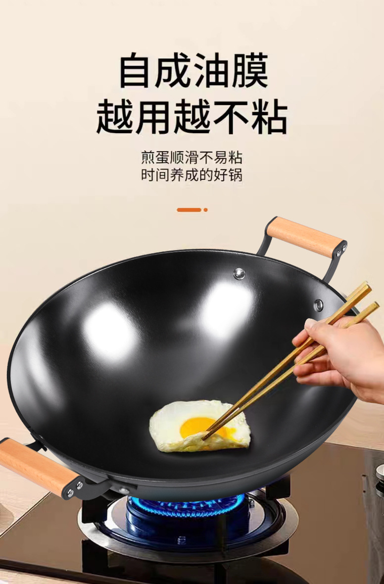 双耳鉄鍋炒め鍋家庭用フライパン電磁ストーブ専用炒め鍋はコーティングされていない鍋が開いた