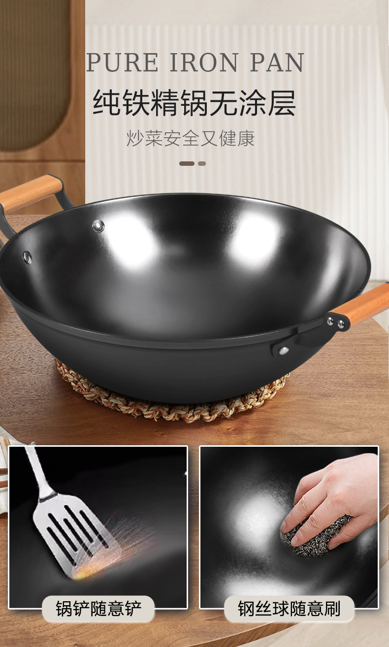 章丘手作り鉄鍋炒め鍋家庭用炒め鍋が鍋にくっつかない古いホテル料理人の商用大馬スプーンが鍋を開けた
