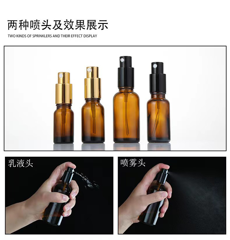 茶色玻璃乳液瓶30ml50ml按压泵头化妆品分装瓶避光喷雾瓶香水瓶