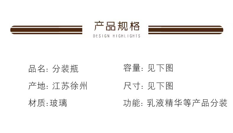 批发按压式精华液分装瓶密封带盖化妆品小样瓶棕色避光精油瓶