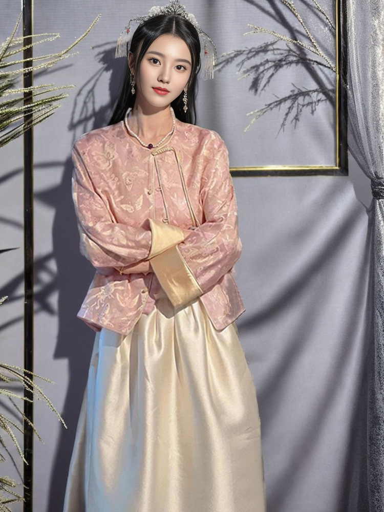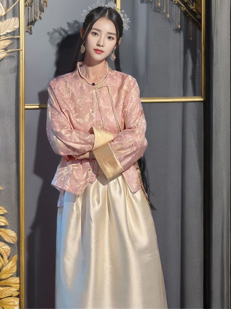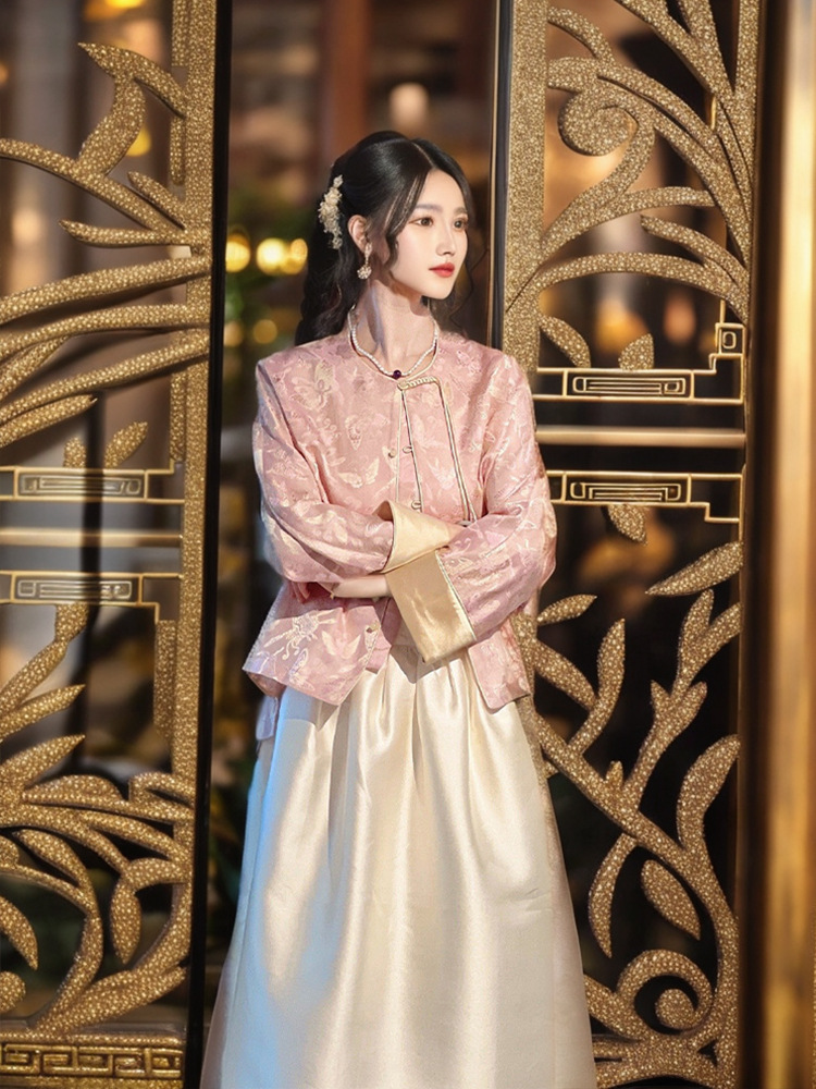 抹茶 2025 春夏新作ピンクジャカード改良チャイナドレスエレガントガール新作チャイナドレス