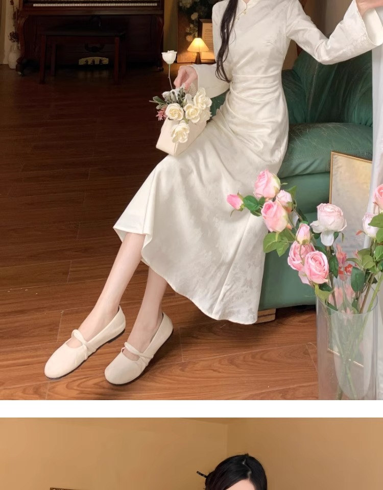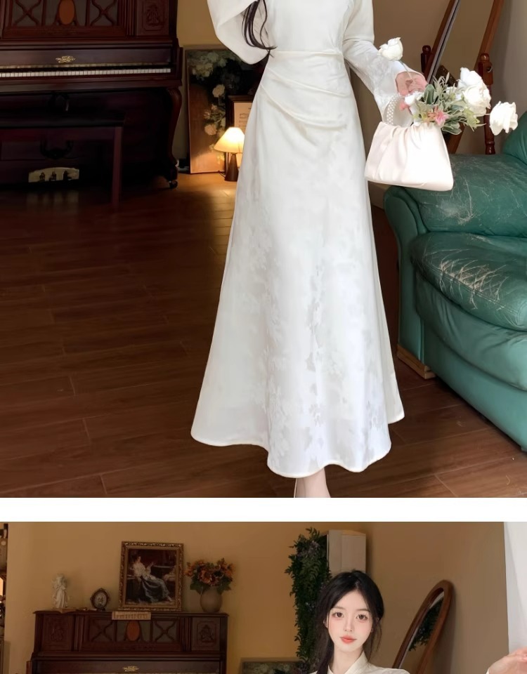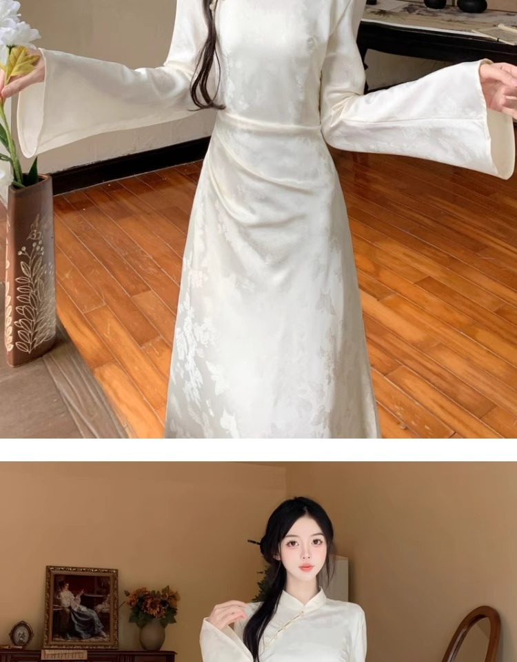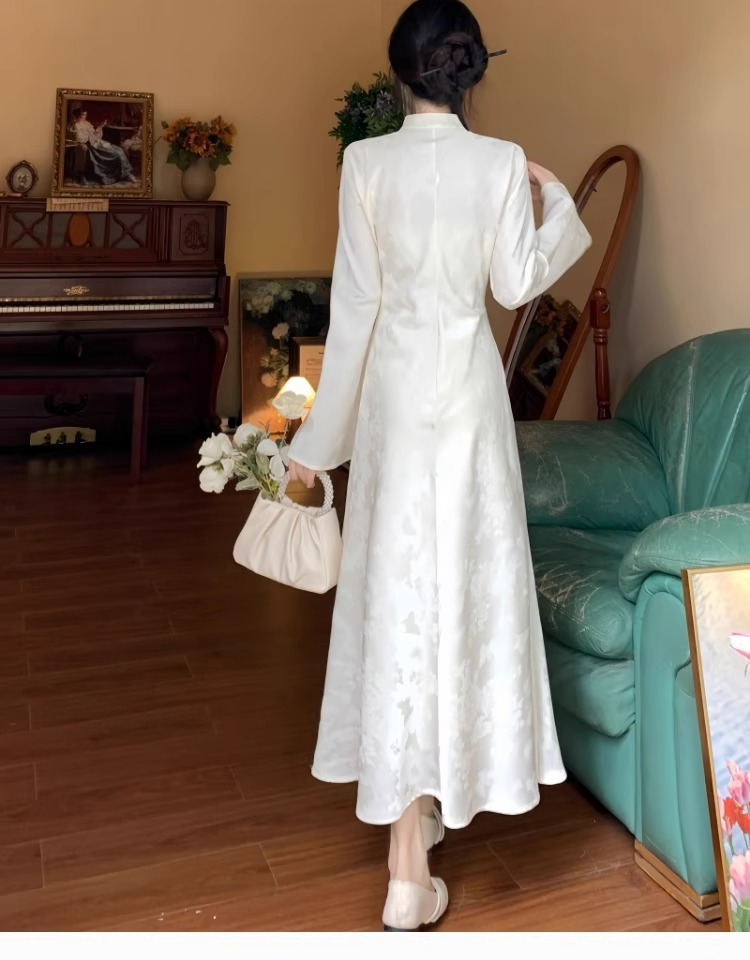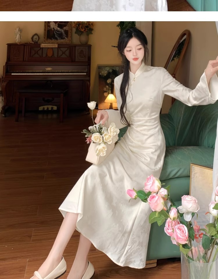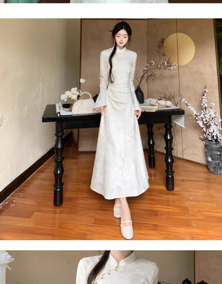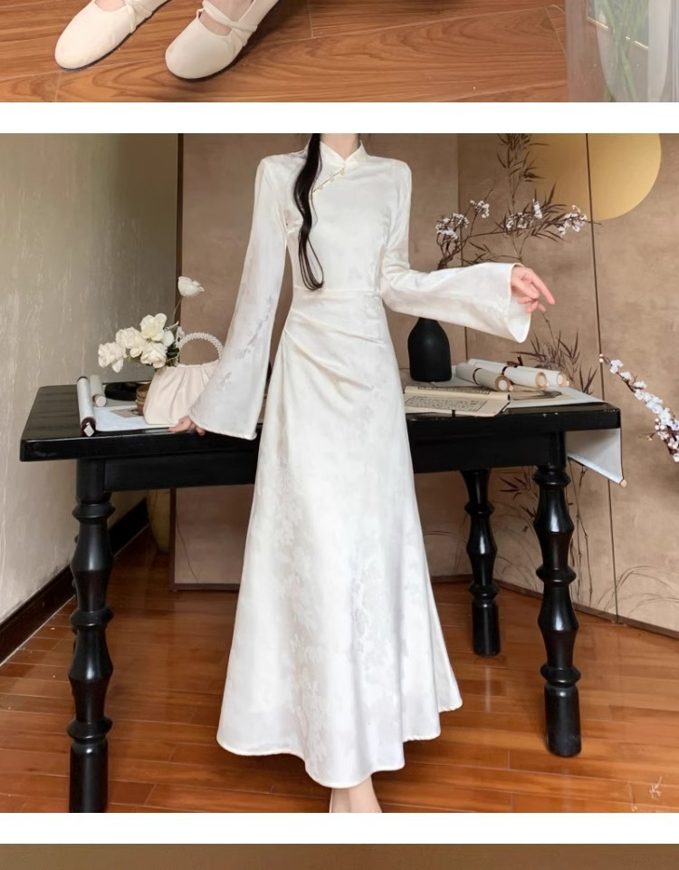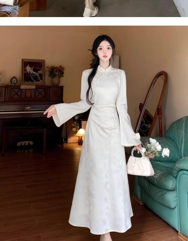 白の逆大袖長袖チャイナドレス秋冬日常改良民国大お嬢さんの絶美気質高級感