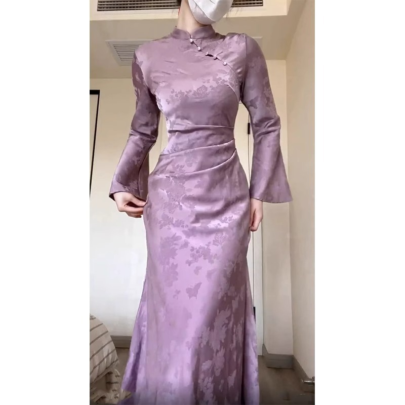 2025年秋冬新作 レトロな新中式 厚手 立体感のある優しい蝶柄 チャイナドレス