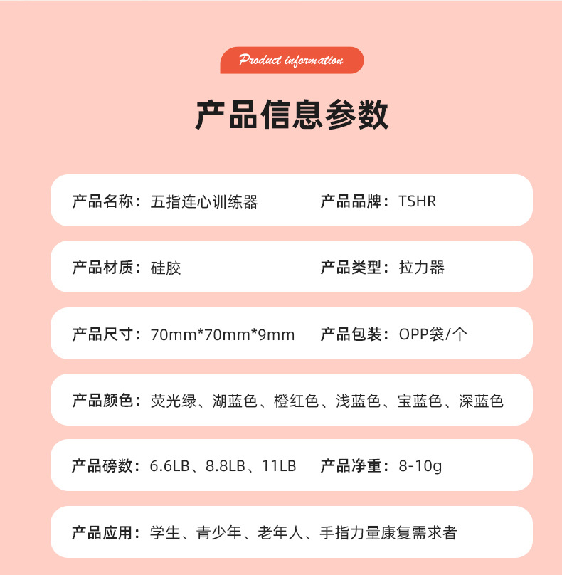 卸売ラウンド 5 本指セット指トレーナー指男性と女性の筋力テンショナーシリコーン指テンショナー