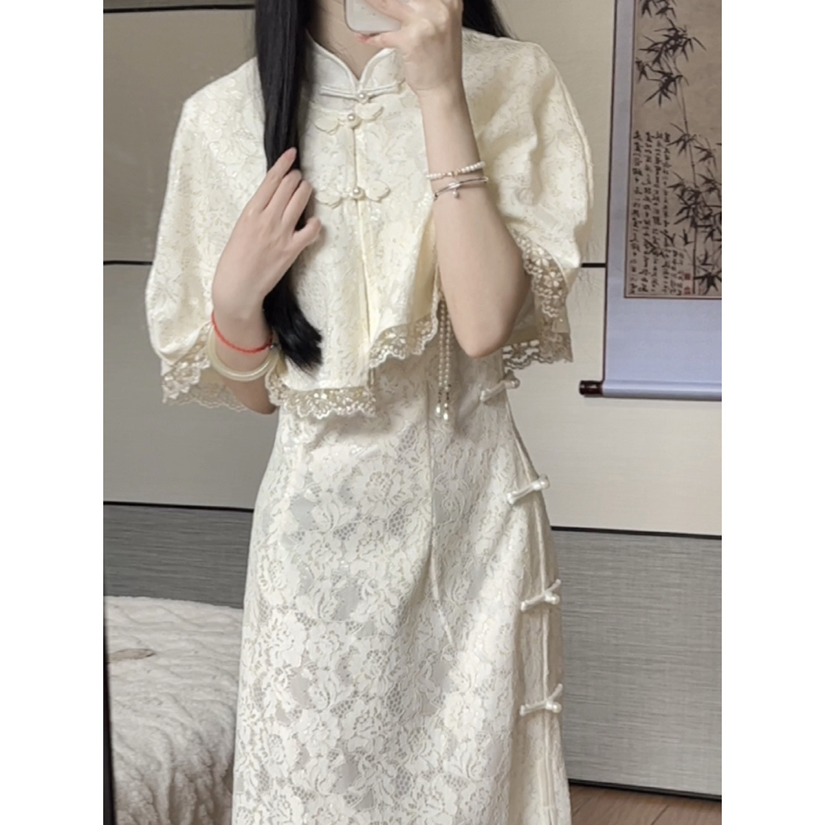 新中国式レトロ国風チャイナドレスの若い高級気質漢服ワンピース2点セット2024春夏新作