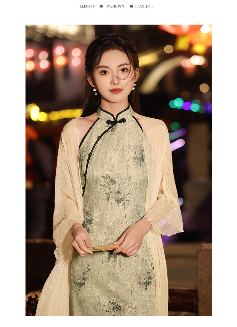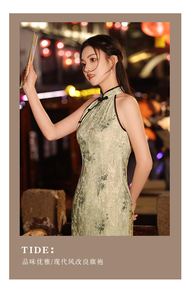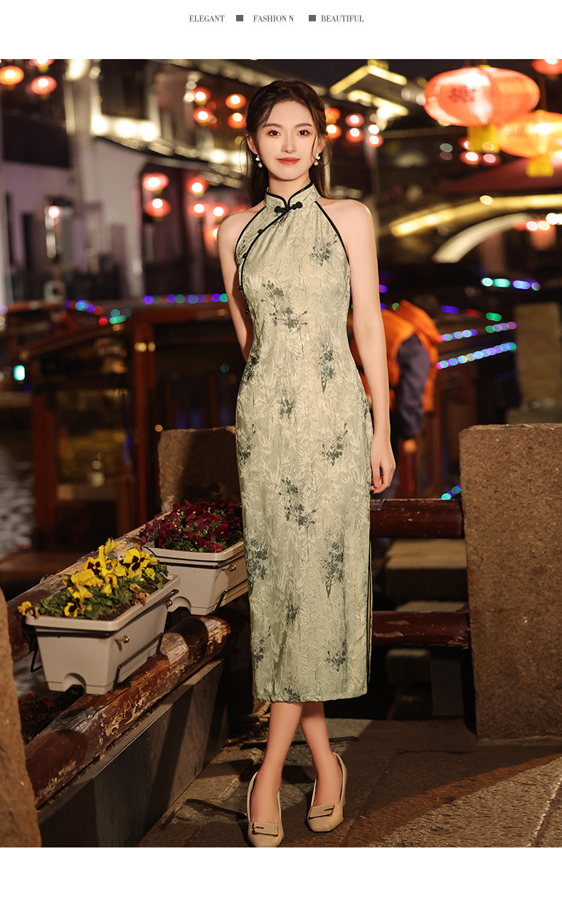 新中国式の緑の首を掛けてチャイナドレスのワンピースを改良しました。