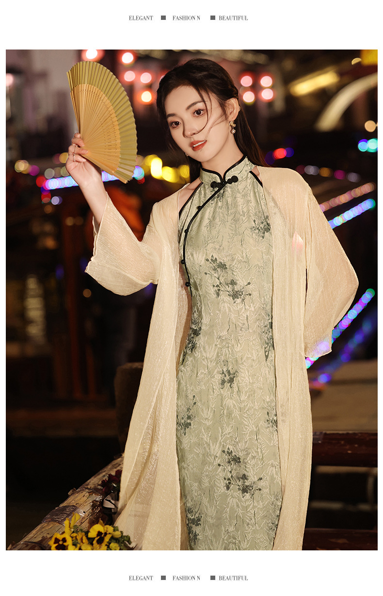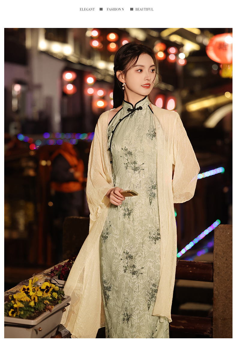 2024新型袖なし首付き新中国式ロングタイプ改良チャイナドレス若いタイプの少女国風復古日常着可能