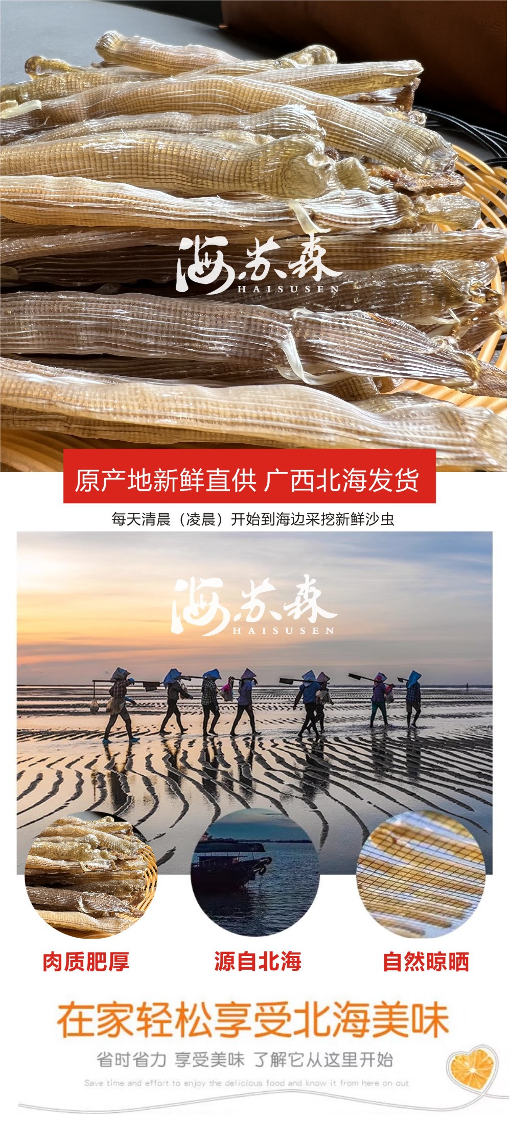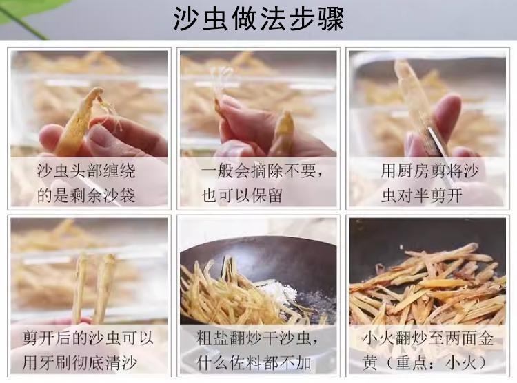 北海特产沙虫干中号500头海鲜干货鲜甜营养滋补自晒干净野生50克