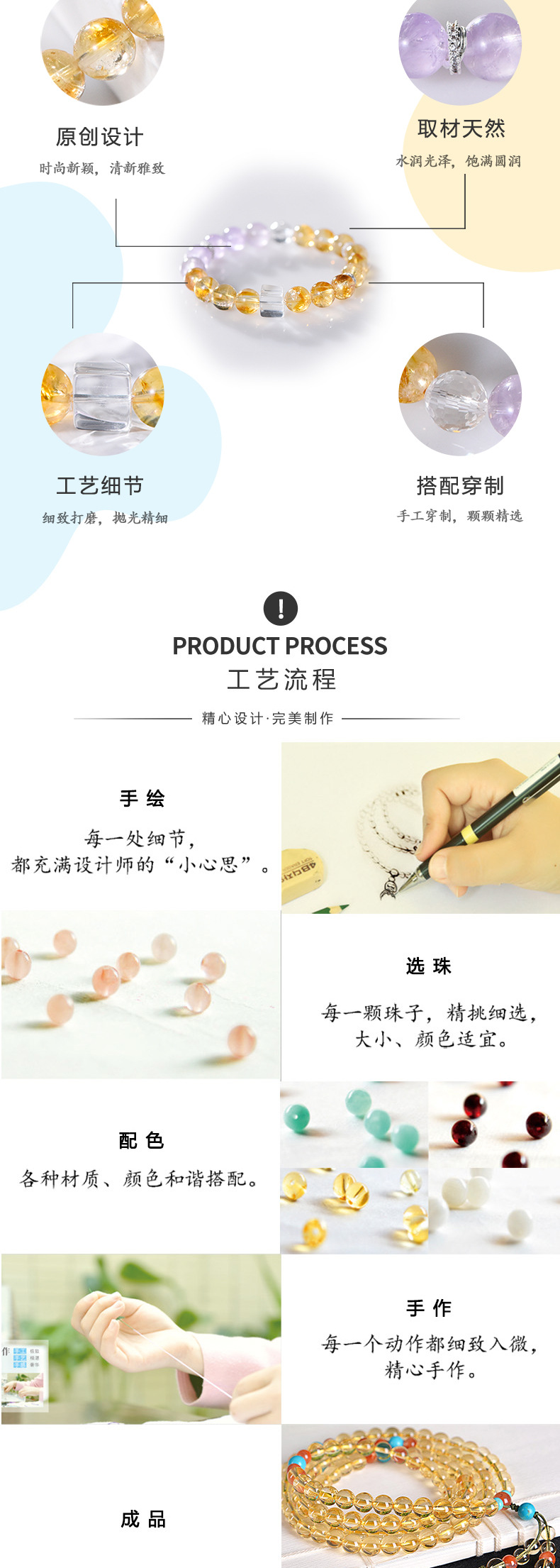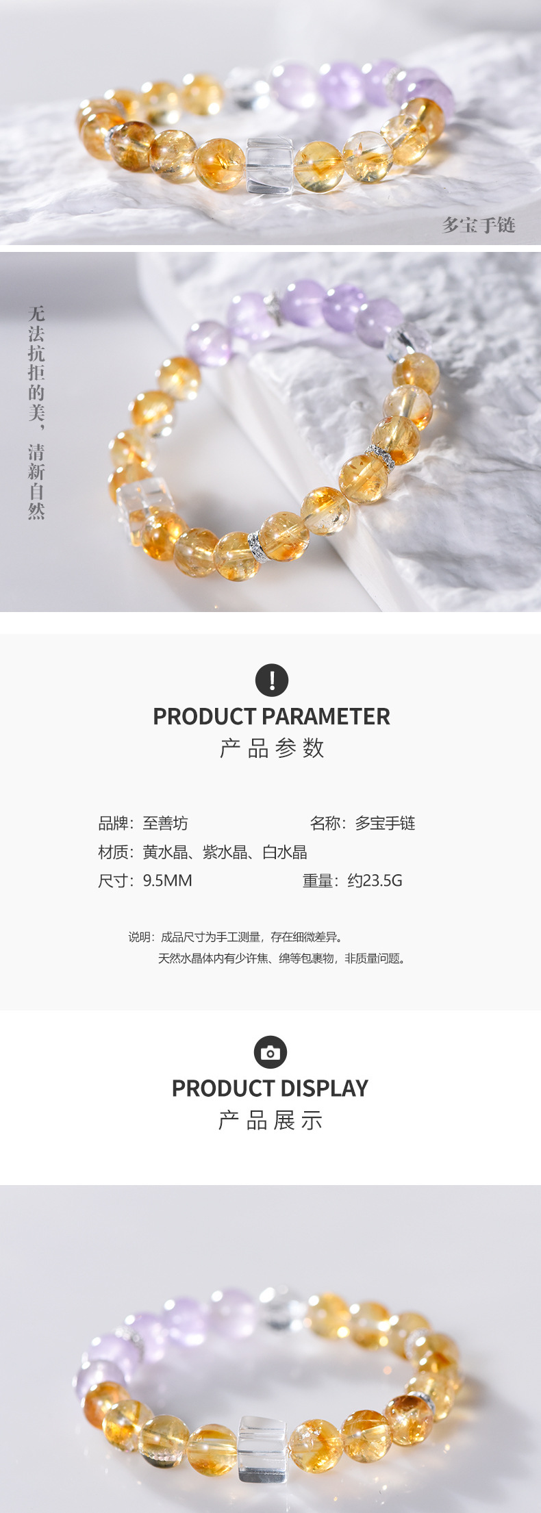 天然粉水晶13mm圆珠单圈黄水晶简约手链配白水晶多宝手串饰品批发