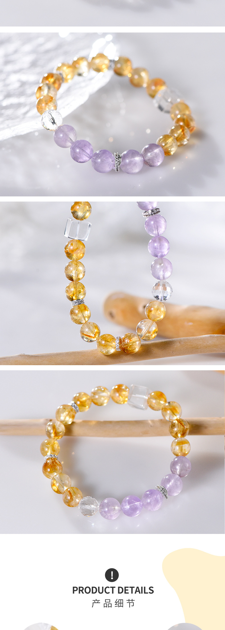 天然8mm黄塔晶水晶单圈手串配白水晶高级百搭小众diy设计个性串珠