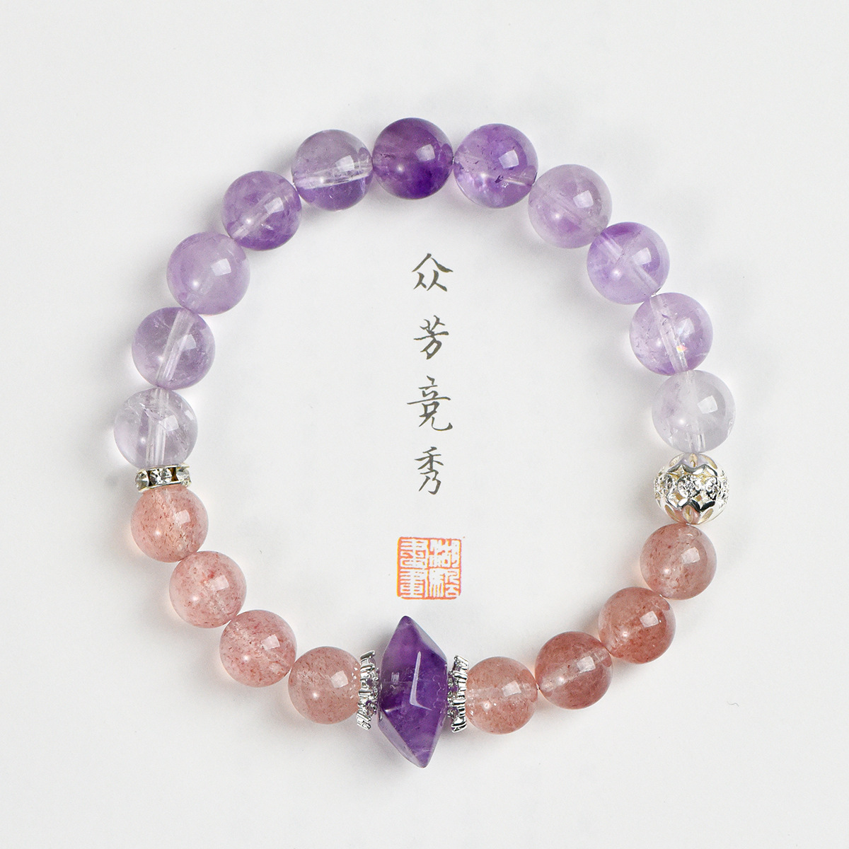 天然紫水晶8mm丸珠単輪ブレスレットファッションシンプルないちご結晶双尖柱アクセサリーの手串卸売り