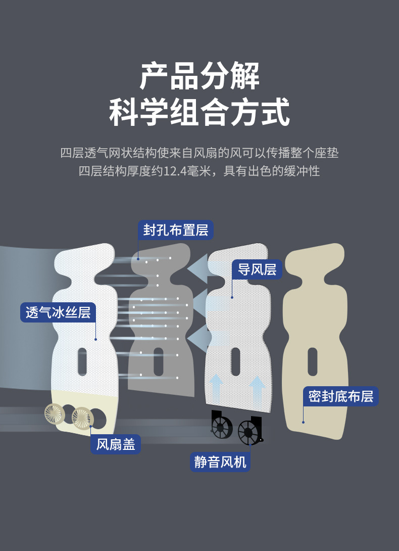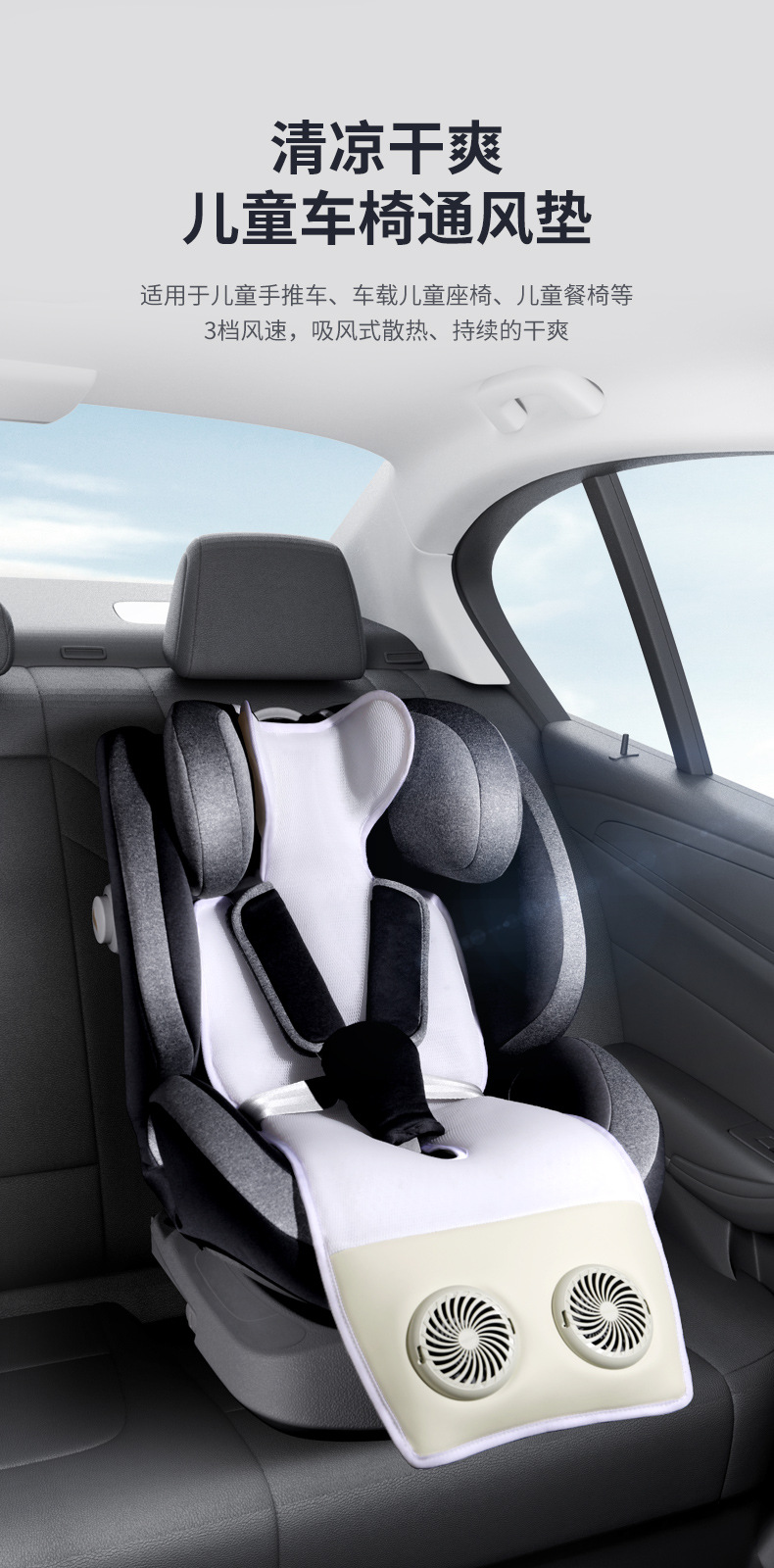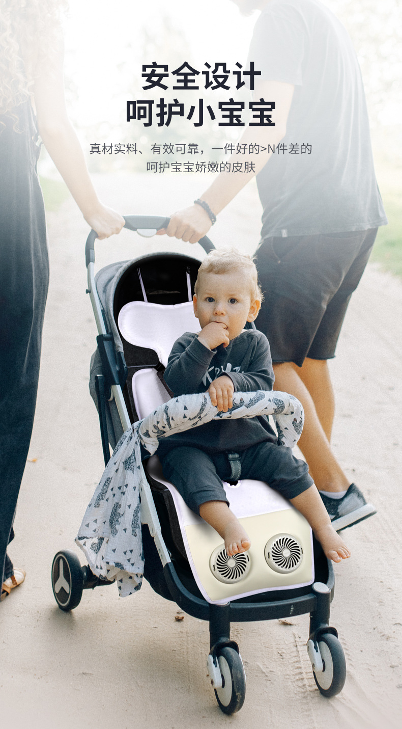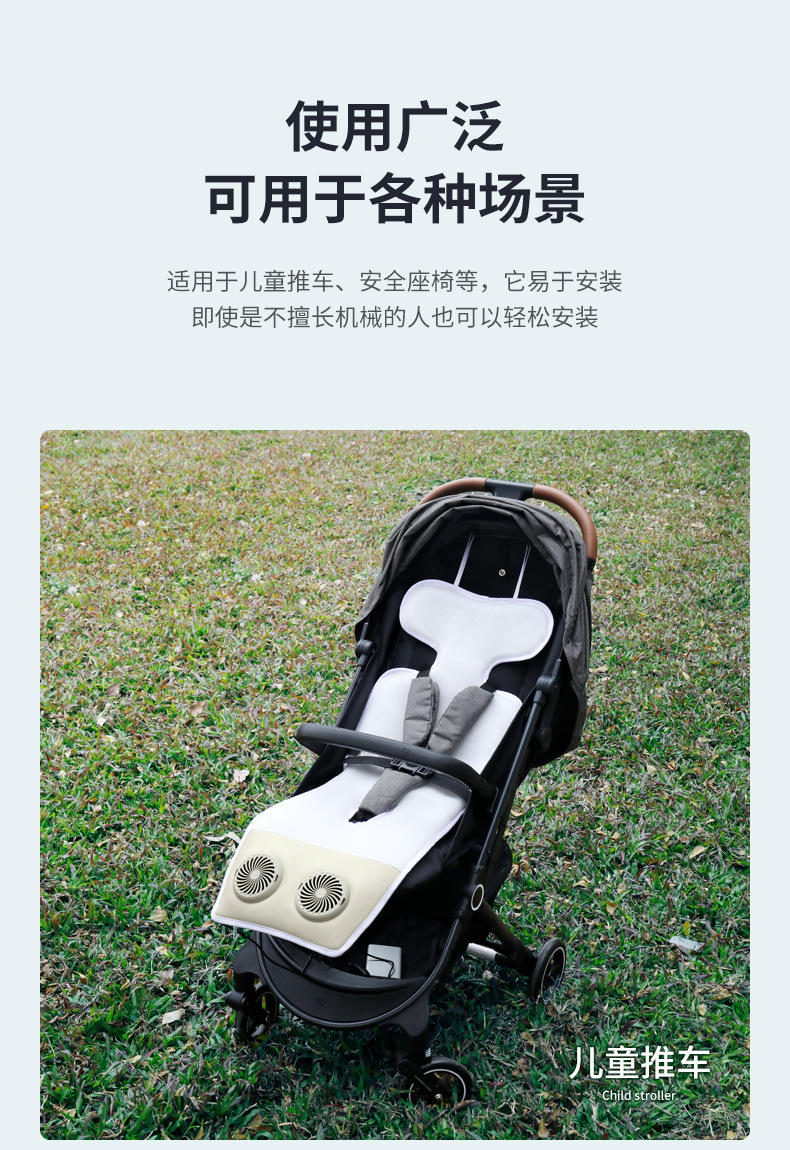 蓄电无线婴儿推车凉席垫透气电动通风坐垫冰丝安全座椅凉席双风扇