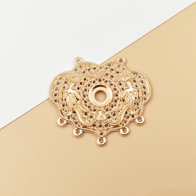 DIY古風アクセサリー模造七宝焼き合金透かし彫り多孔質双鳳祥雲錠(14264)