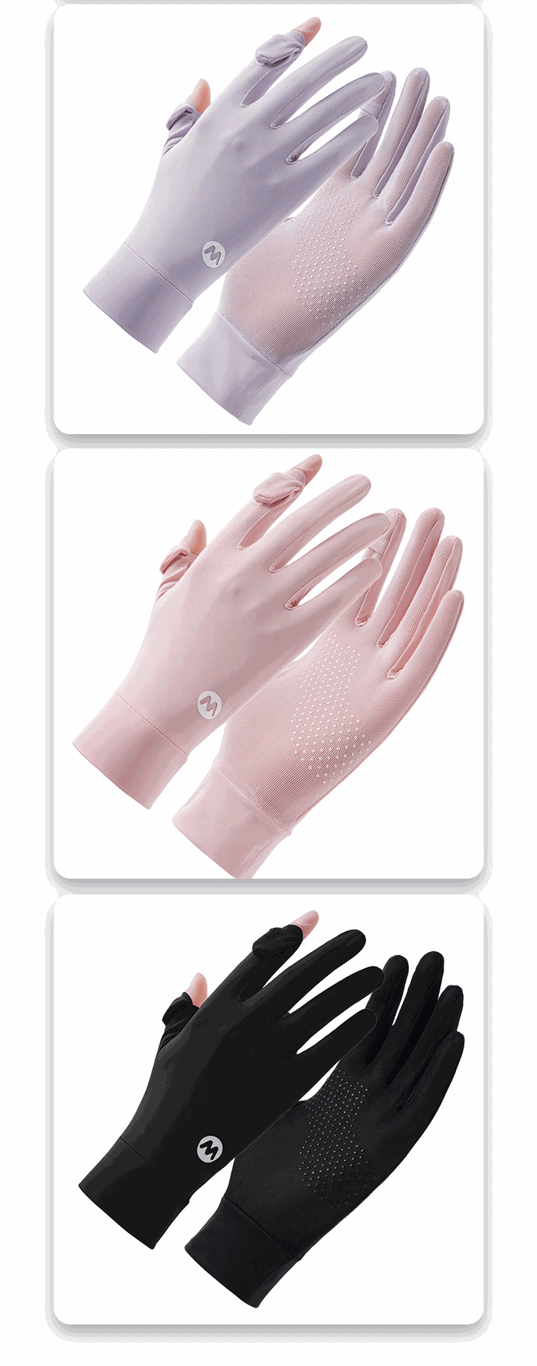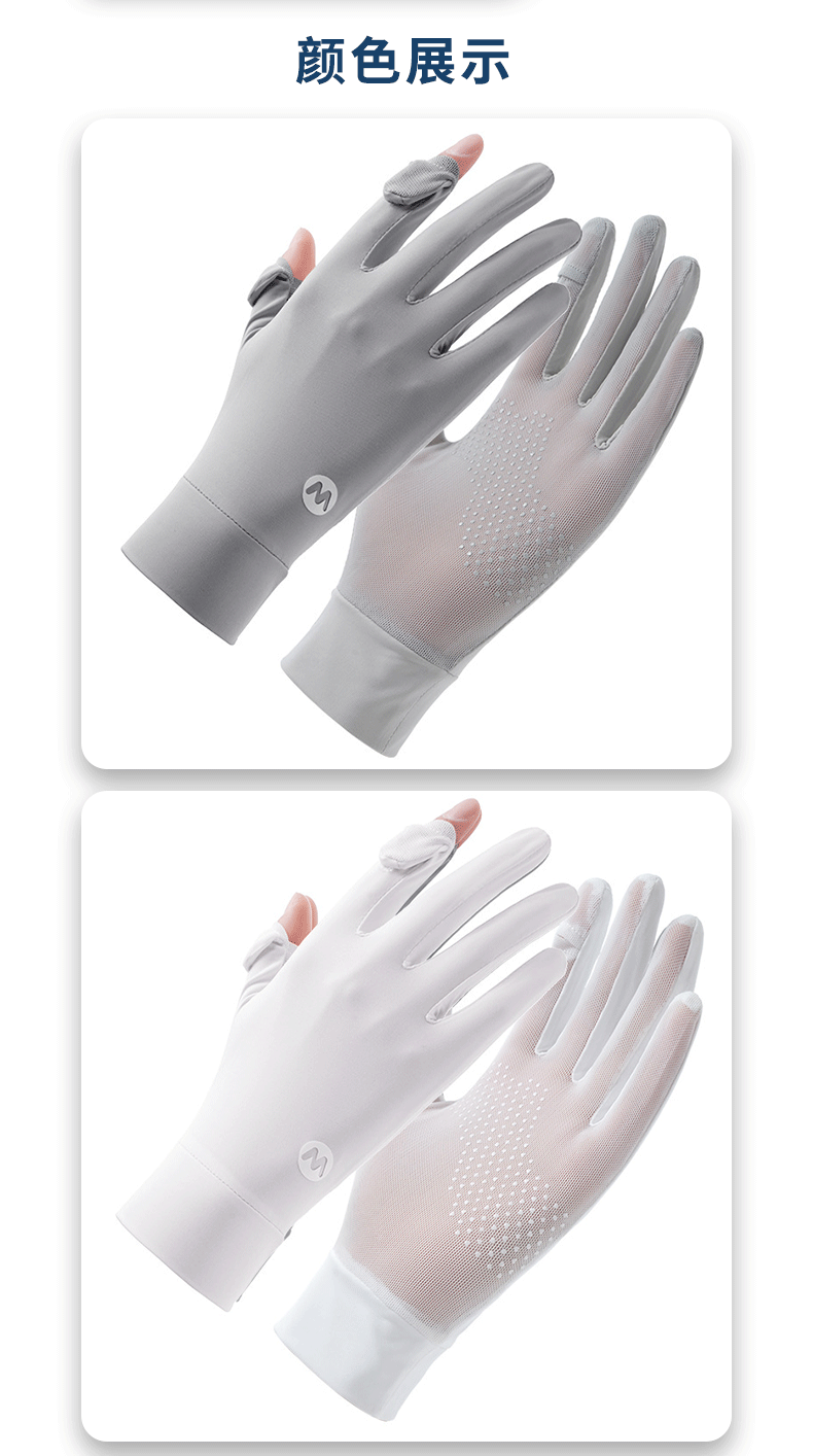 夏薄い日焼け止め手袋女性の新しい指漏れ屋外サイクリング通気性アイスシルク手袋日焼け止め用品卸売