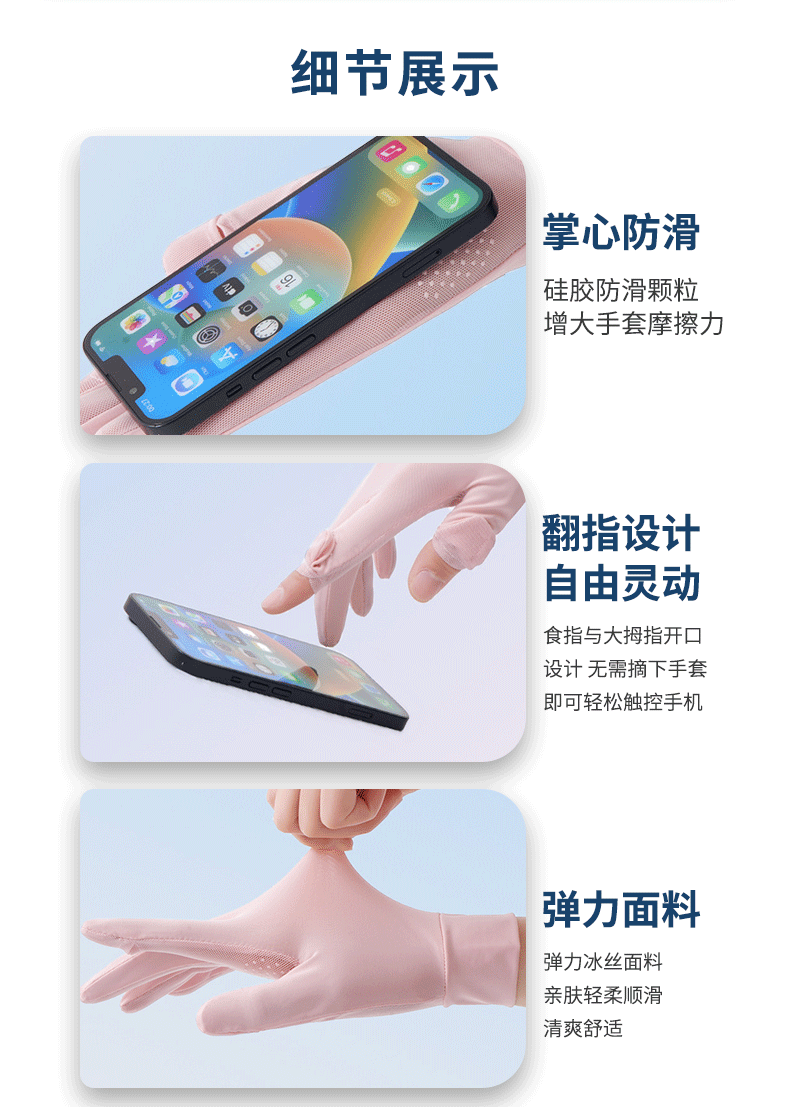 氷糸日焼け止め手袋漏れとは、新型夏の紫外線防止屋外通気滑り止めタッチパネル手袋女性卸売り