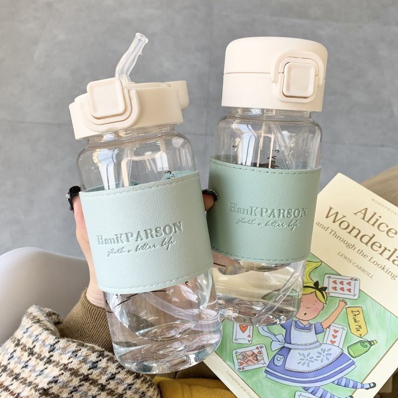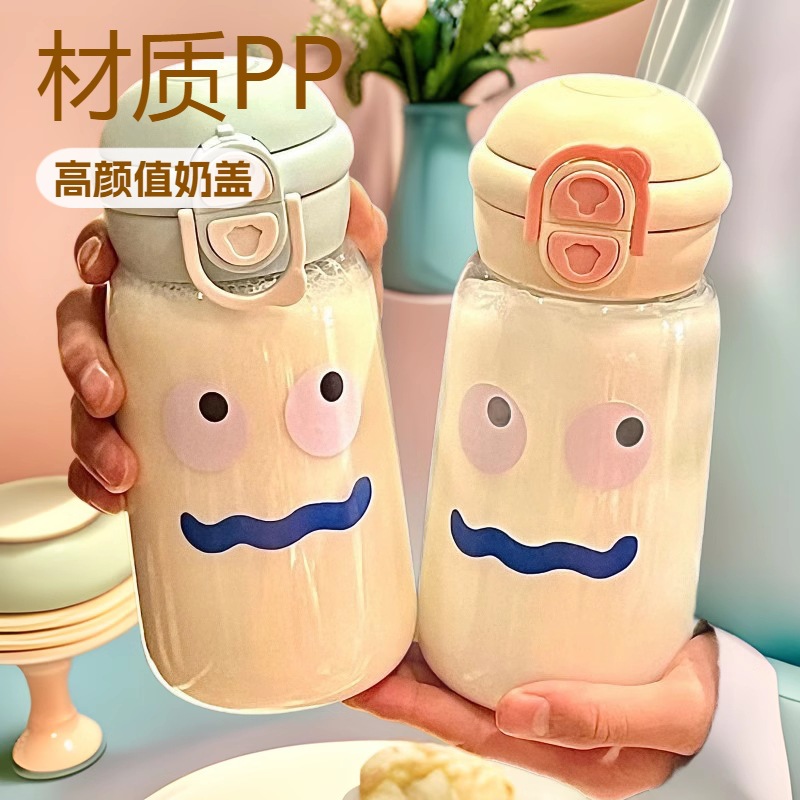 プラスチックの高颜値ネット赤バウンスカバーストローカップ皮カバー付きパーマ防止カップ男女学生カップルカップ