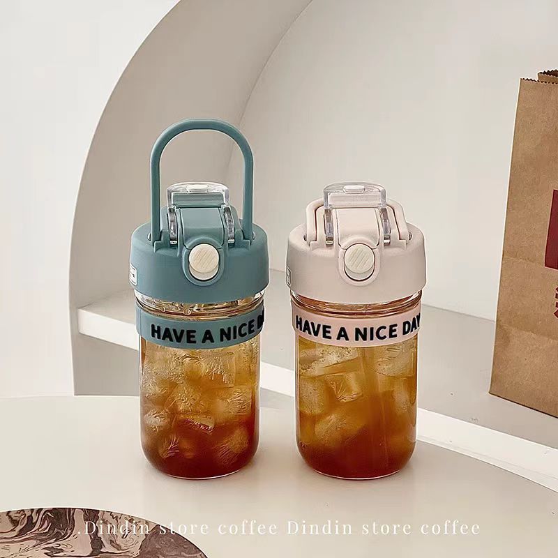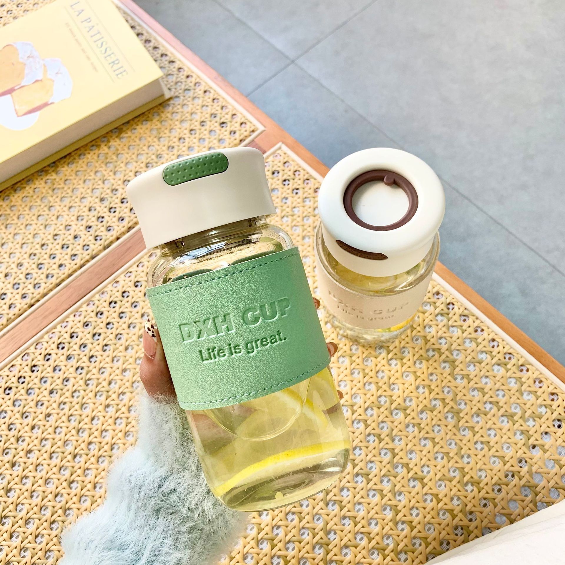 シンプルなグラス学生2024新型高ホウ素シリコン耐高温ストローカップ高颜値小型携帯カップ女