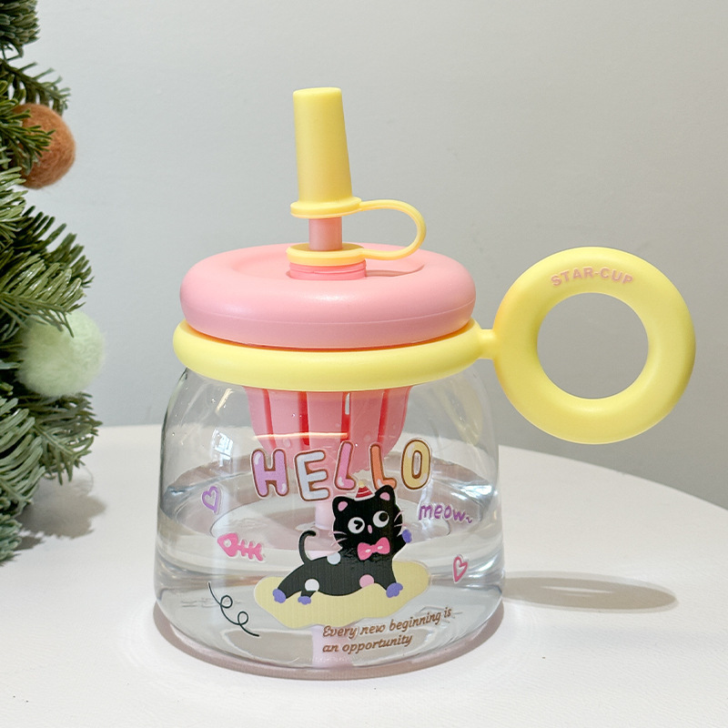 新型プラスチック取っ手茶水分離ストローコップ大容量高颜値児童女子転倒防止アニメコップ