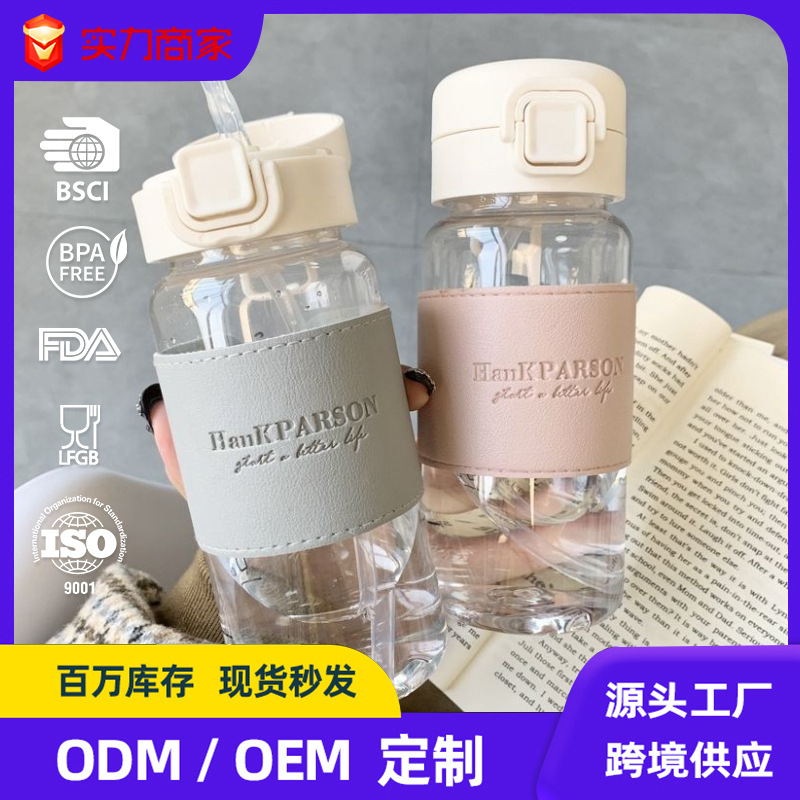高温耐性のプラスチックカップ、レザーカバー付きティーカップ、大容量カップ、高価値ストローカップ、ウォーターカップ、学生用プラスチックウォーターカップ