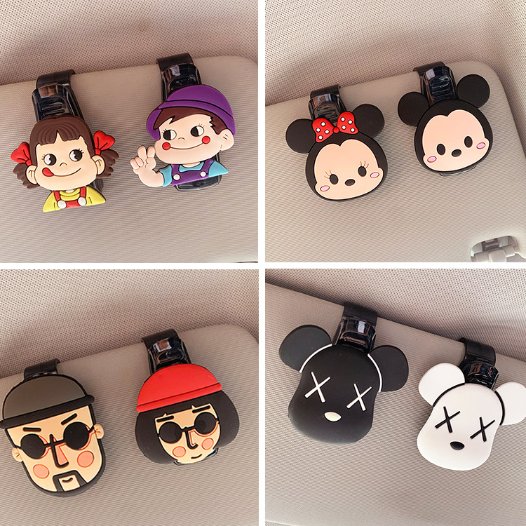 車載メガネクリップ多機能サンバイザー収納漫画かわいい車サングラスサングラスメガネクリップメガネフレーム車用