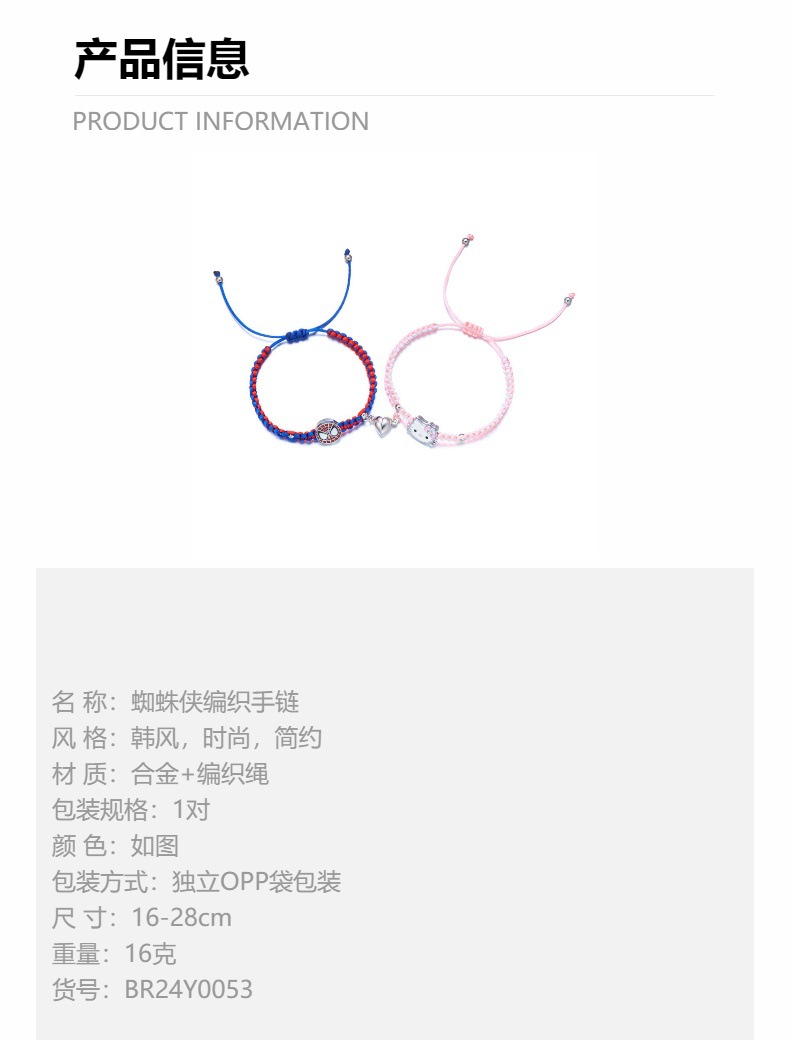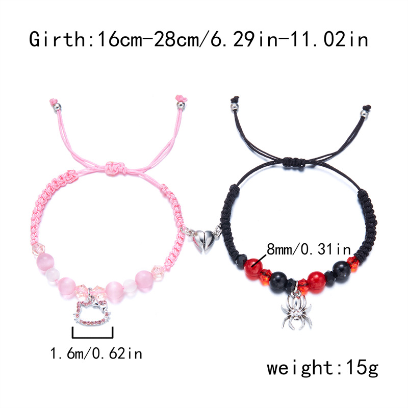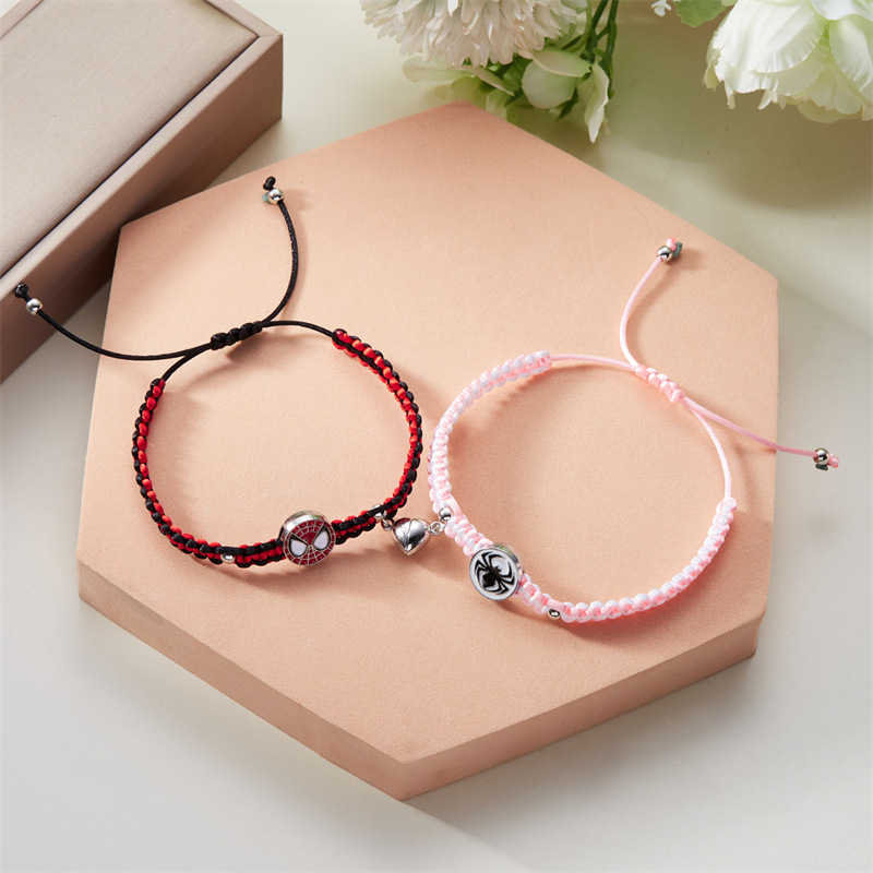 国境を越えた新型ハロウィーンアクセサリーファッション手編みスパイダーマンコウモリ愛磁気吸引カップルブレスレット卸売り