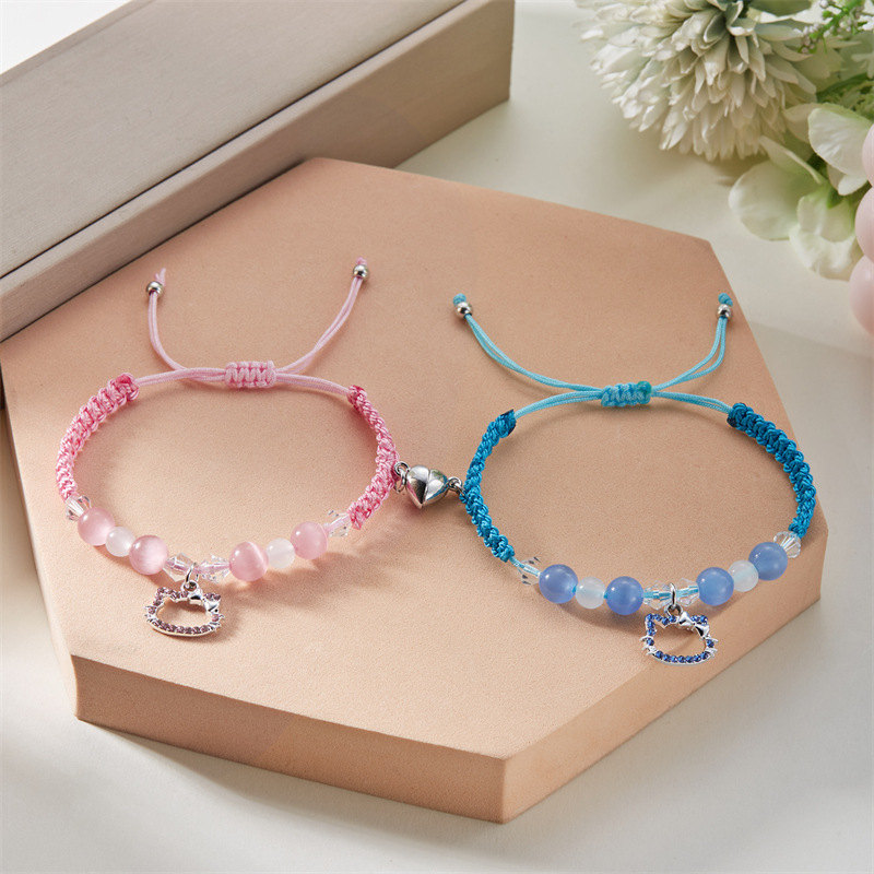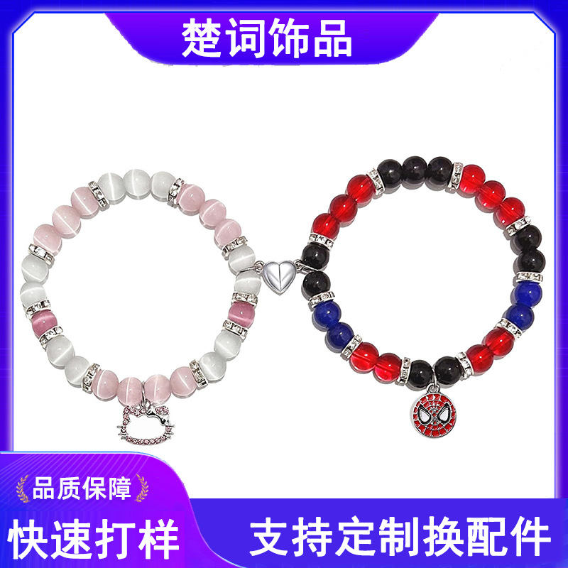 クロスボーダーtk同じタイプkt猫スパイダーマン新型ハート型マグネットブレスレット手編み手編みビーズアクセサリー卸売り