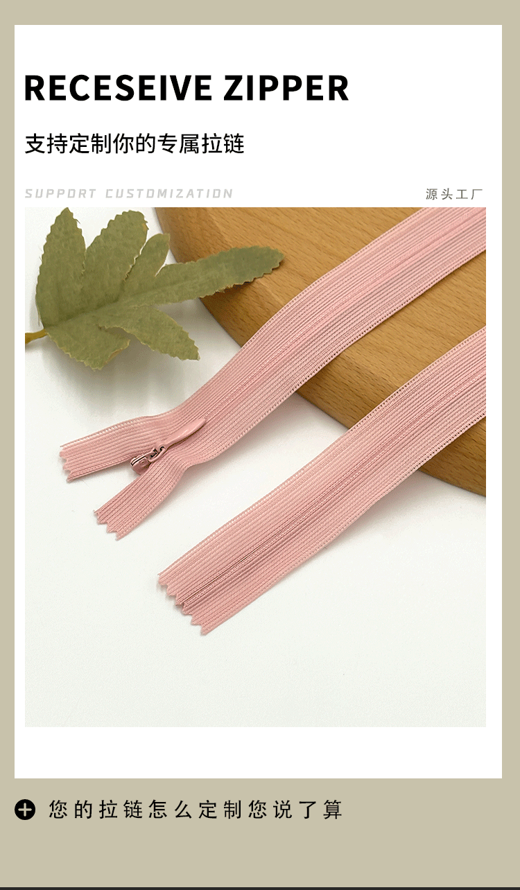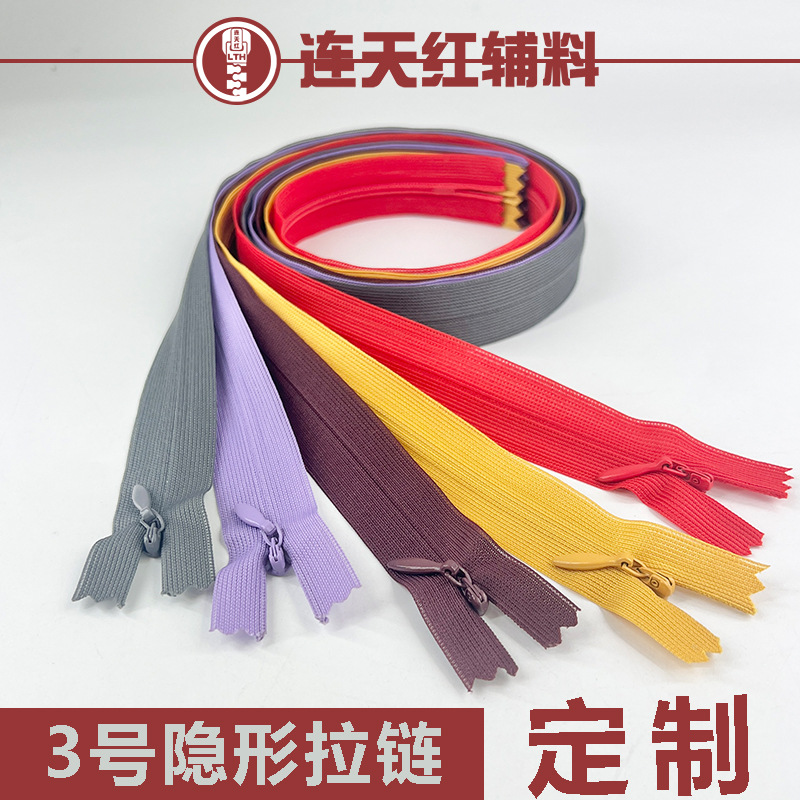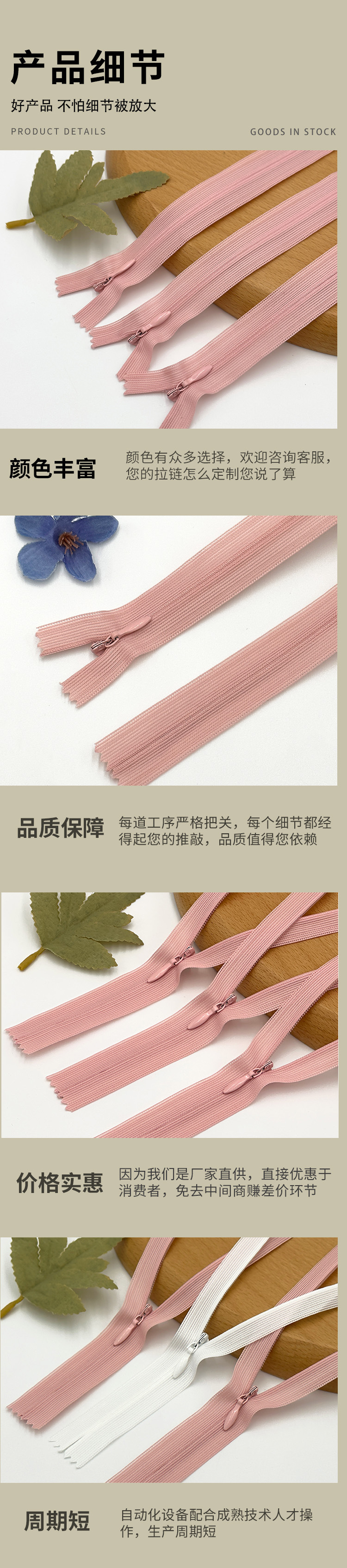 现货3号隐形闭尾拉链彩色拉链条水滴头自锁拉牌裙子女装服装辅料