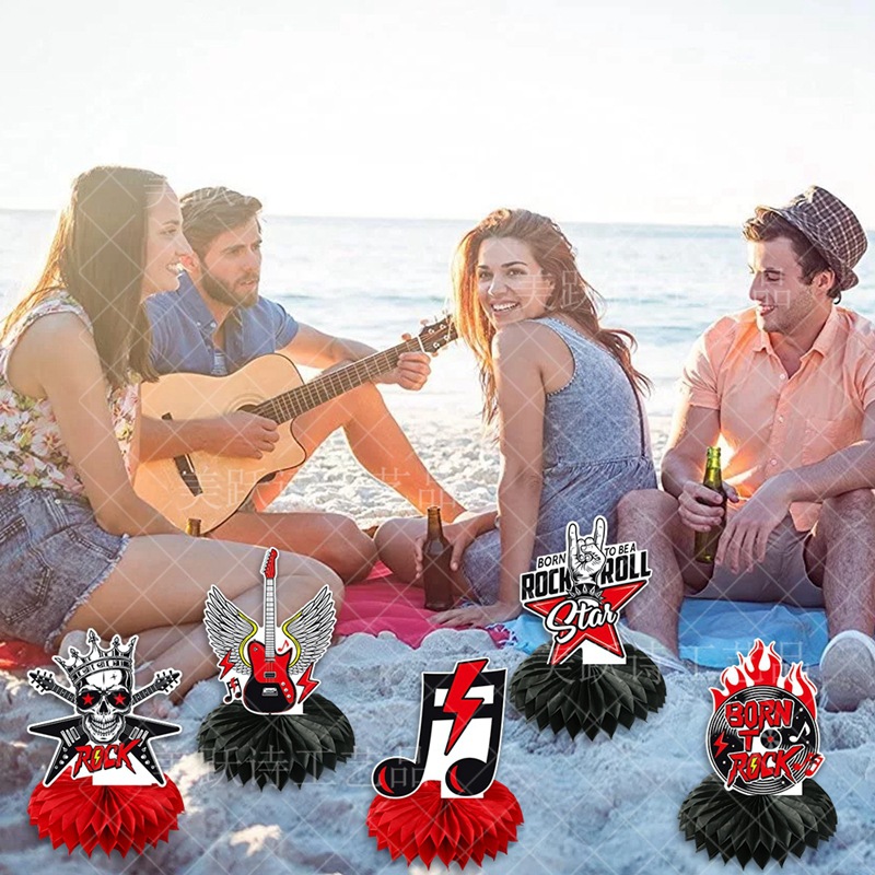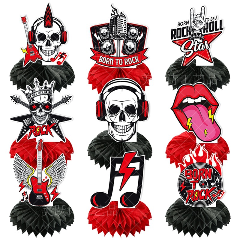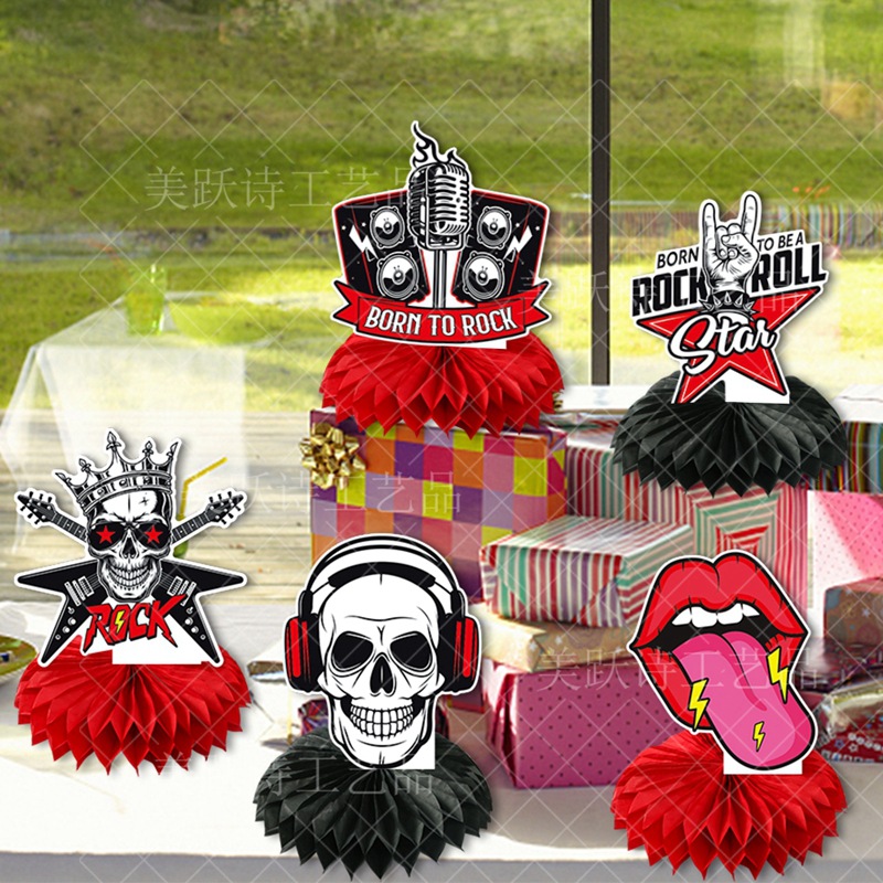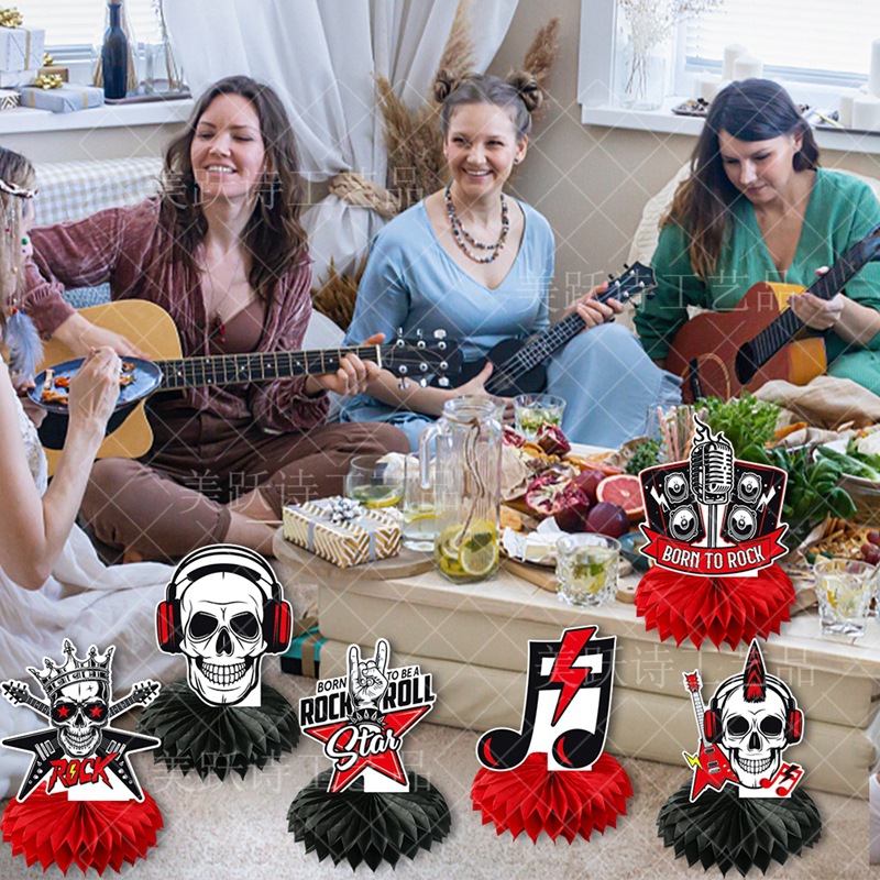 产品用途:摇滚乐派对装饰用品,生日派对装饰,桌面布置道具,摇滚主题派对用品。