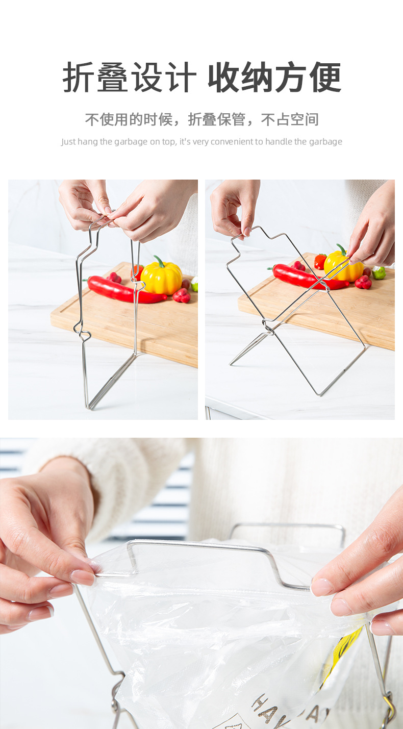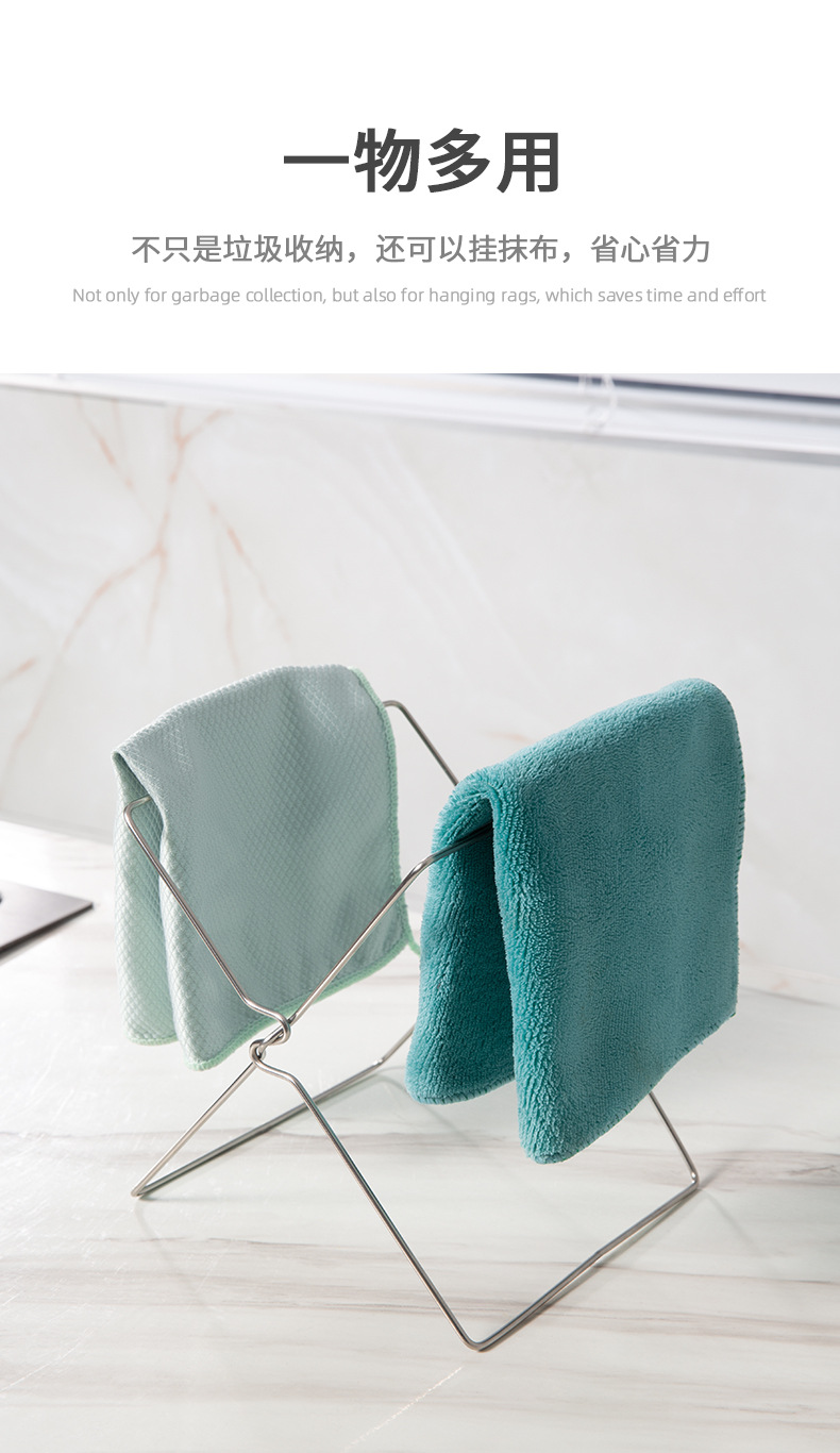 家庭用ステンレスゴミ袋棚折りたたみ式厨房分類収納雑巾棚ゴミ箱ビニール袋ホルダー