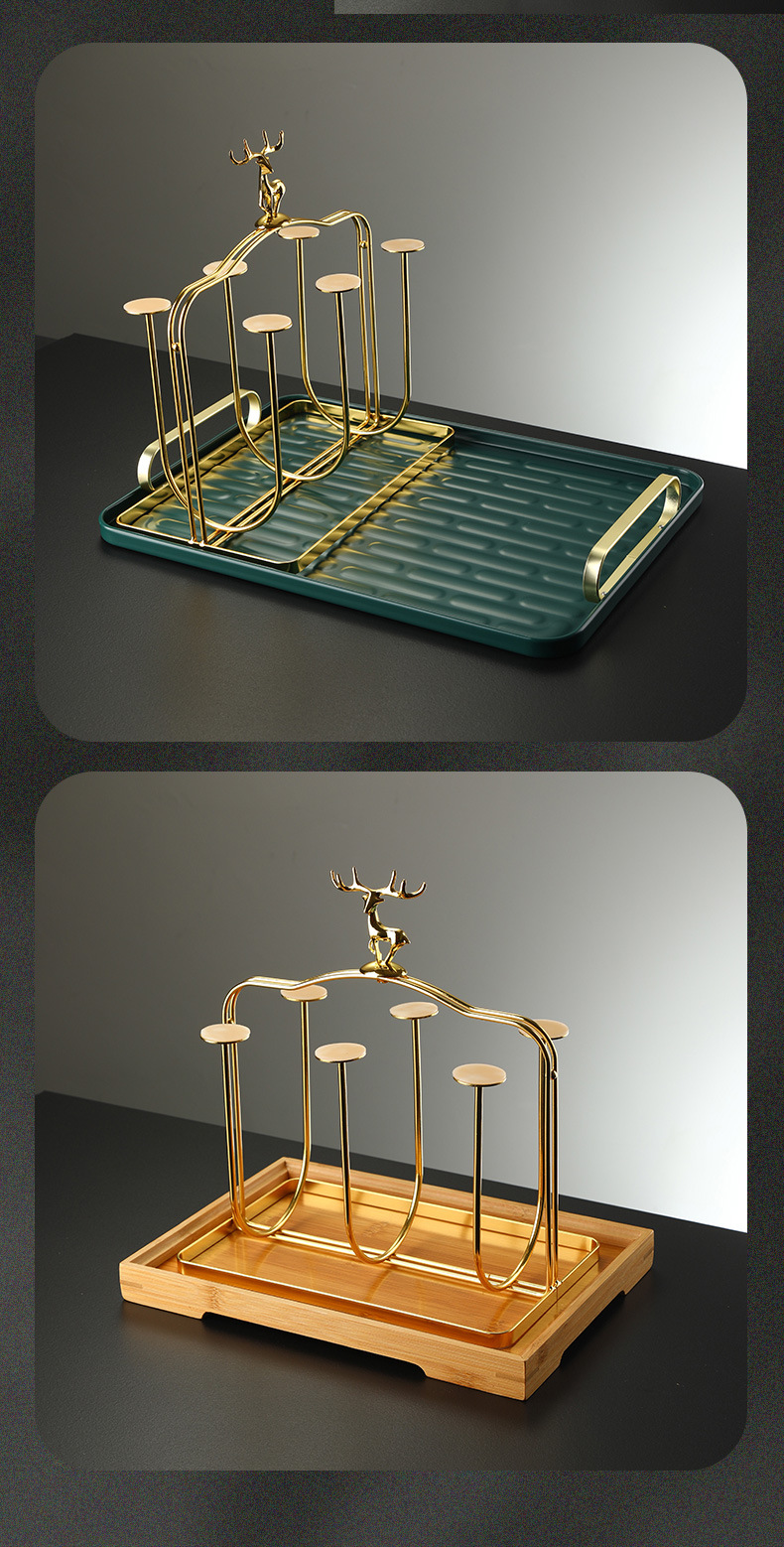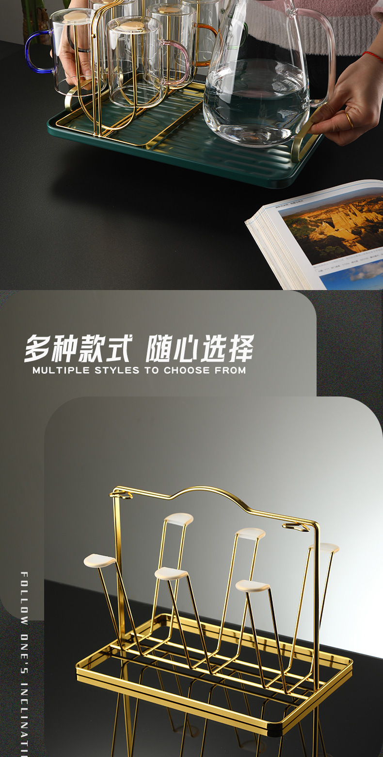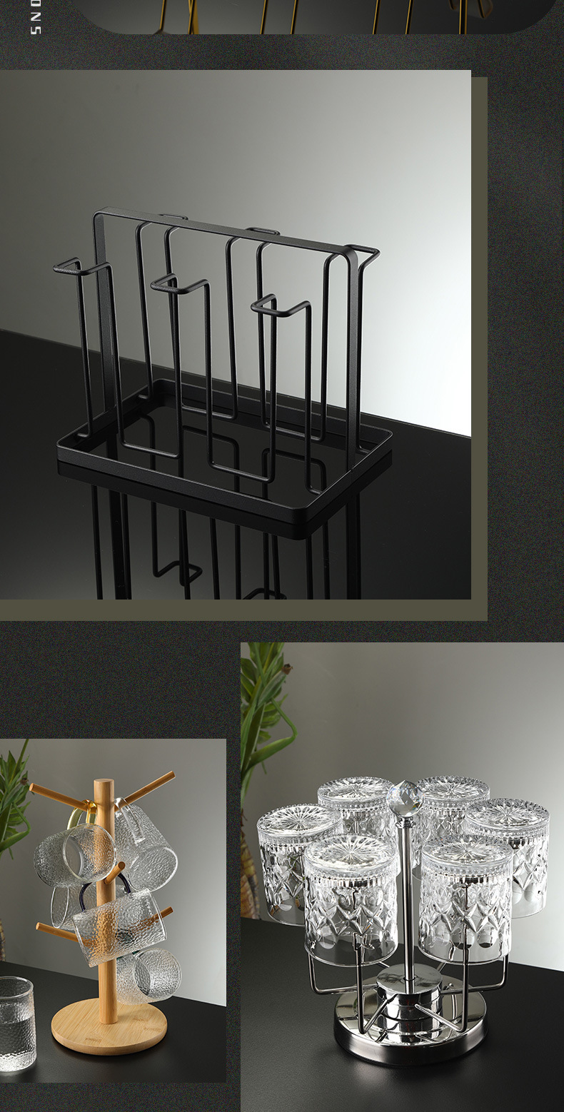 玻璃杯茶杯置物杯架台面沥水收纳架茶几倒挂架子套装带杯子托盘