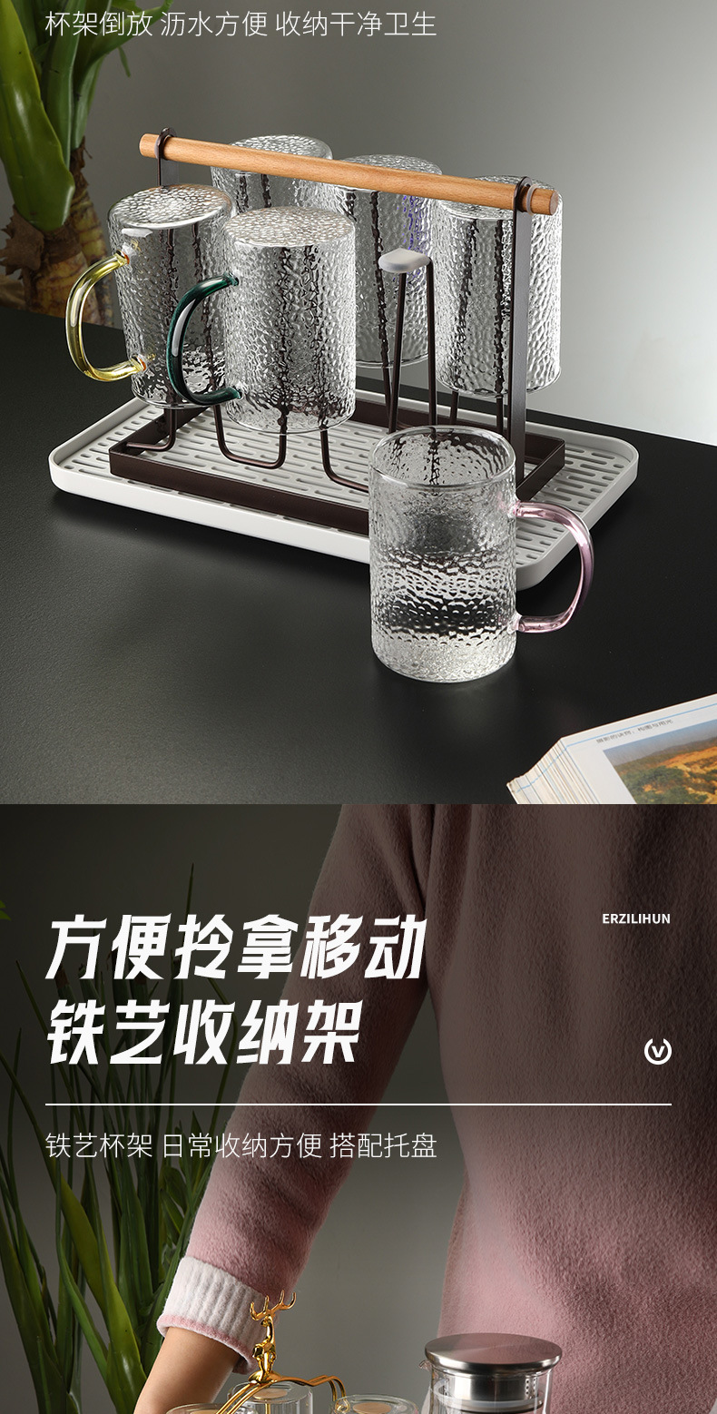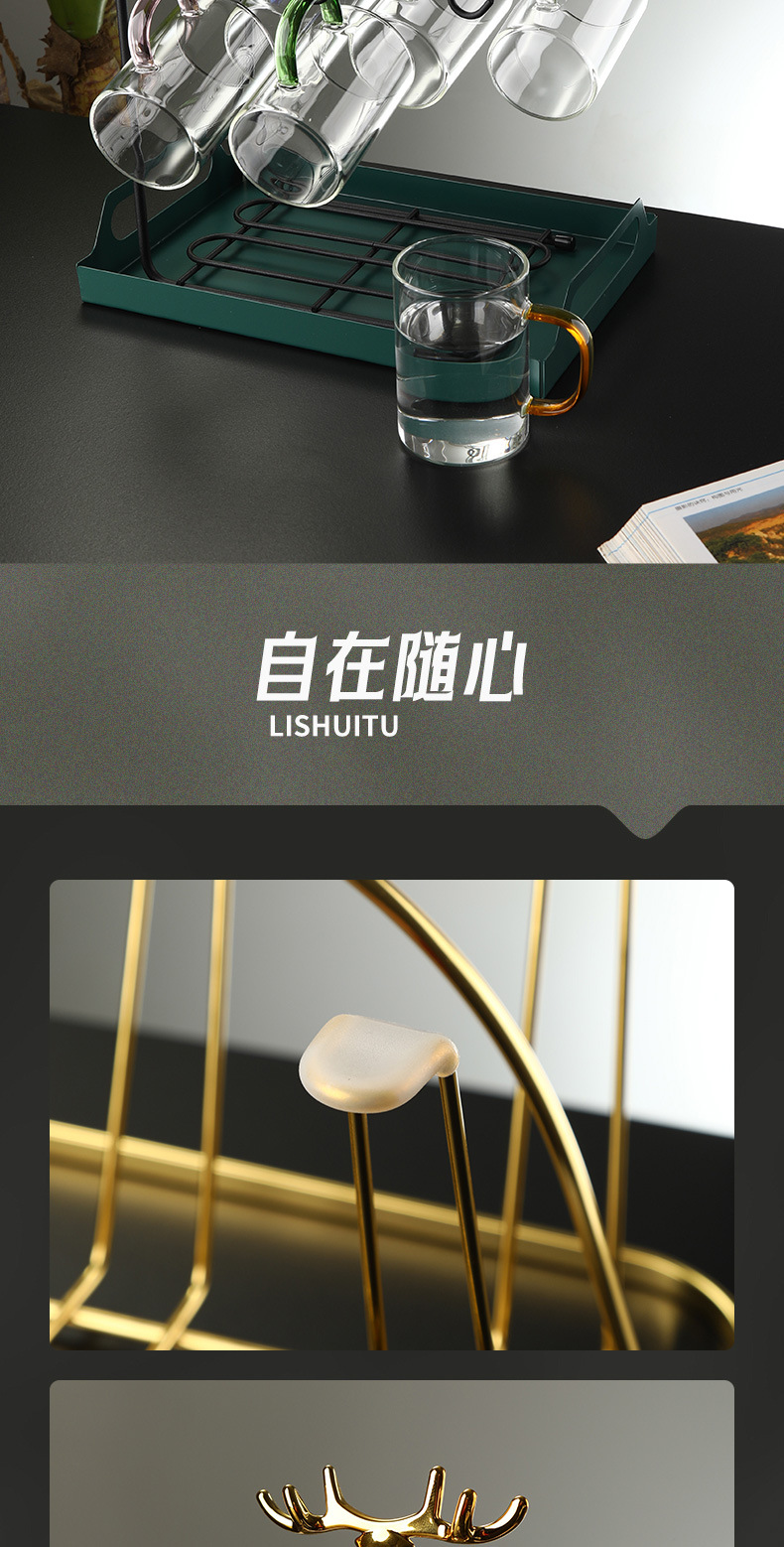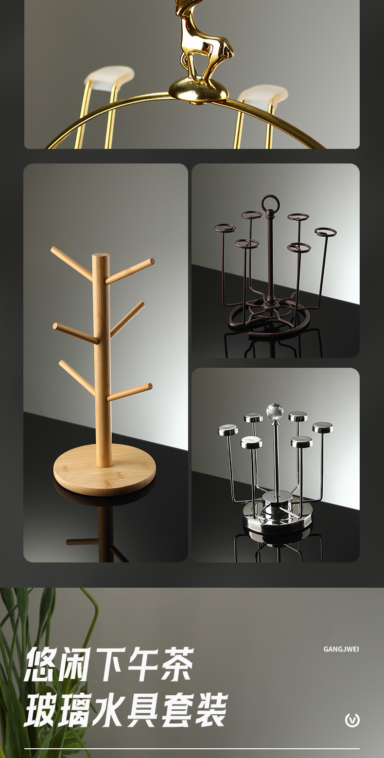 玻璃杯茶杯置物杯架台面沥水收纳架茶几倒挂架子套装带杯子托盘