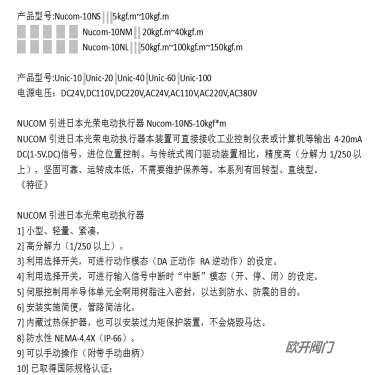 日本栄光電動アクチュエータkoei NUCOM-10NL-200kgf.m全シリーズ供給