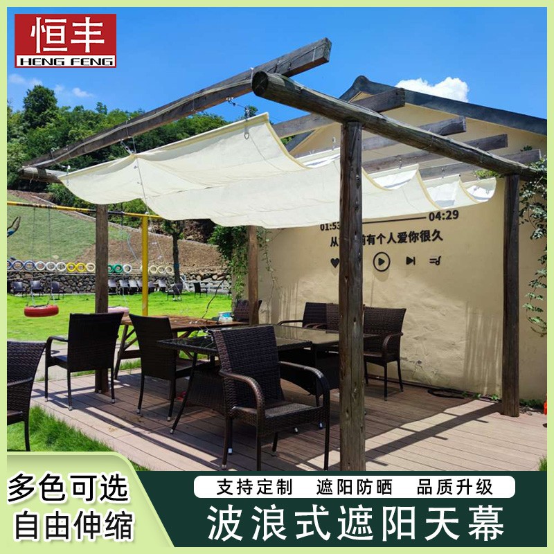 屋外日よけ手動伸縮波状キャノピー日よけテント中庭バルコニー屋上日よけサンルーム