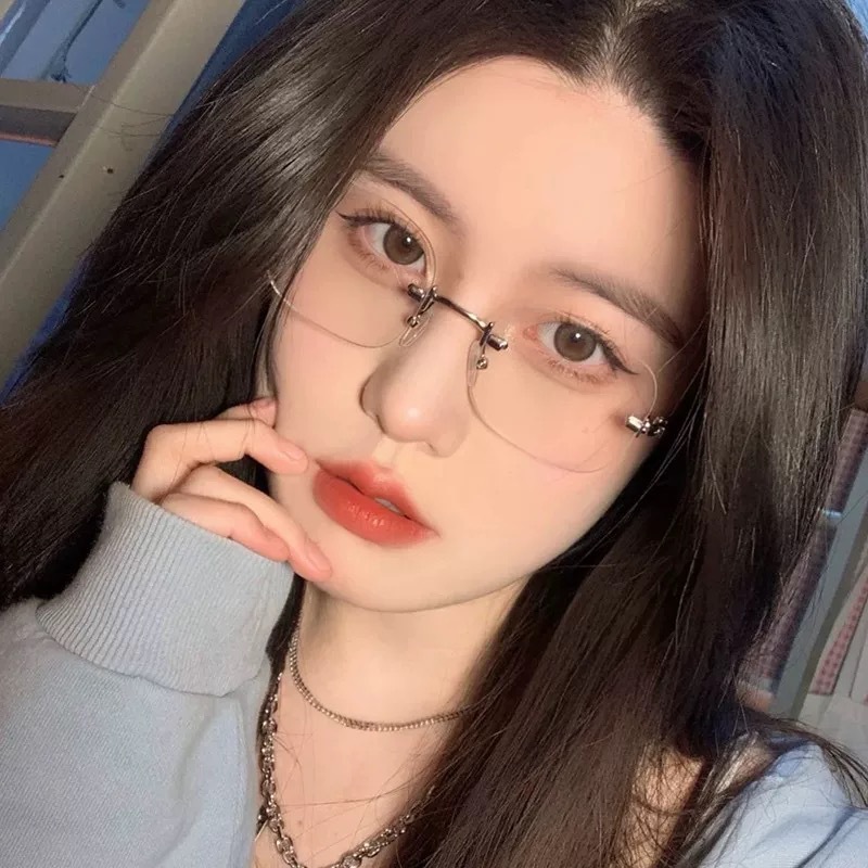 新款无框眼镜女韩版潮防蓝光素颜纯欲无边框近视镜可配度数眼镜框