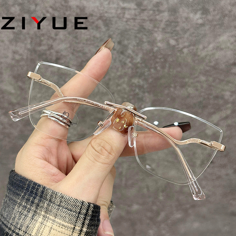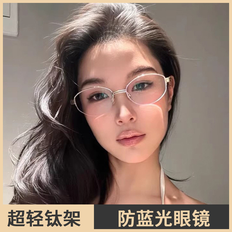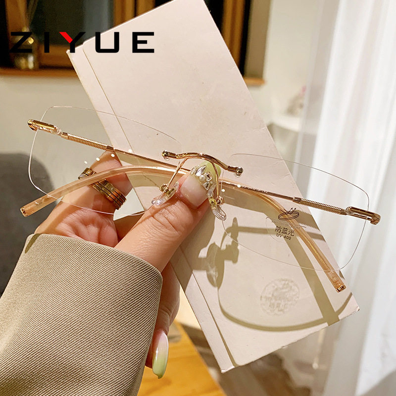 超軽量フレームレス近視眼鏡女性高級感フレーム金属眼鏡フレーム付き度数防止ブルーレイ平光鏡