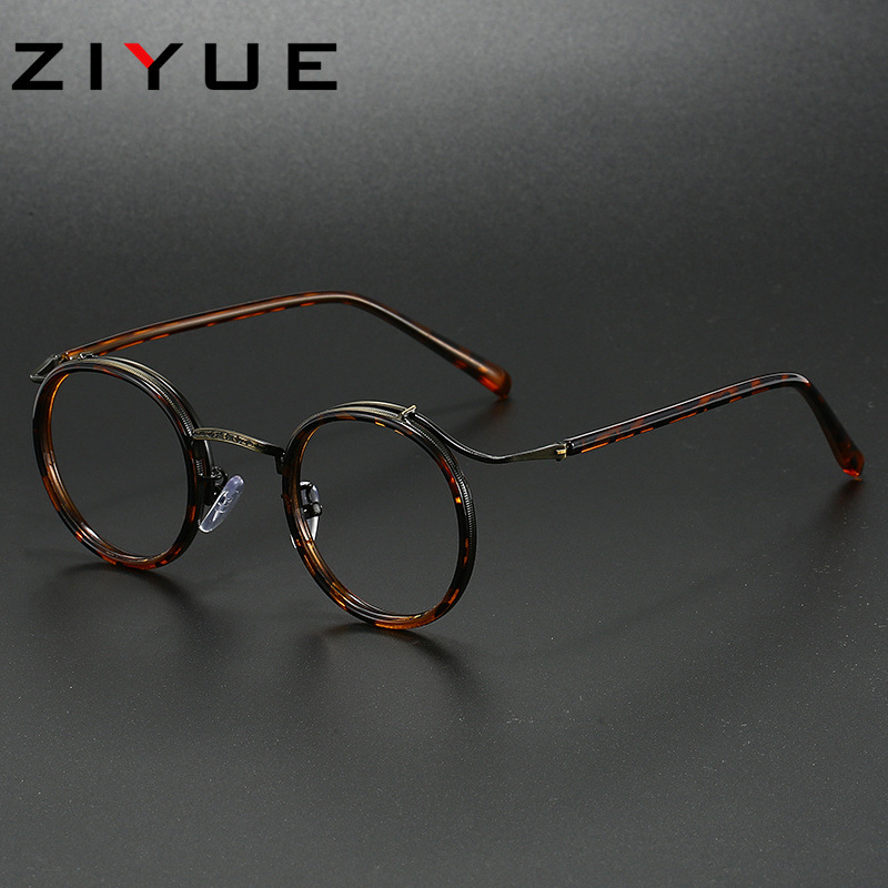 高級すっぴん加工品、超軽量純チタン丸フレームメガネ、近視女性用、レンズ装着可能、ブルーライト対策、四角顔・丸顔用