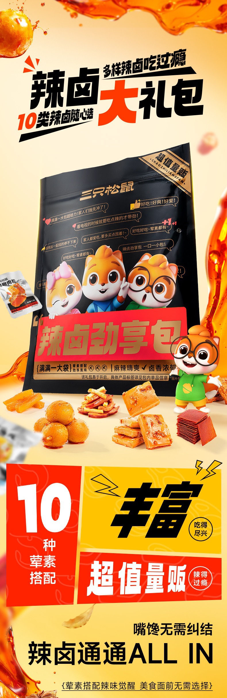 【リス三匹 _ 辛いハロゲンギフトバッグ150包】スナックギフトバッグ