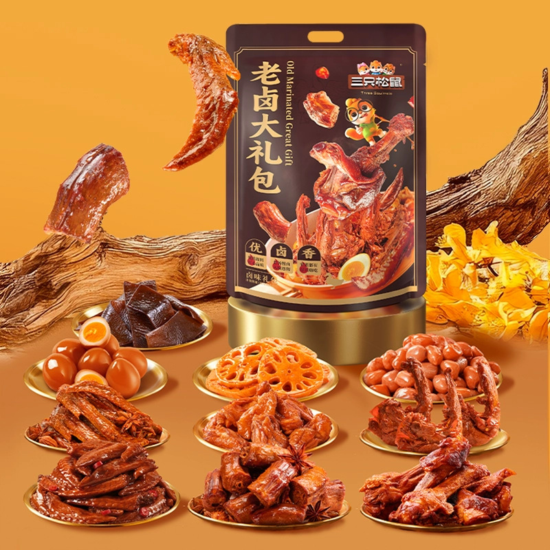 三只松鼠_老卤大礼包613g卤味鸭脖鸭翅鸭锁骨休闲零食品小吃熟食