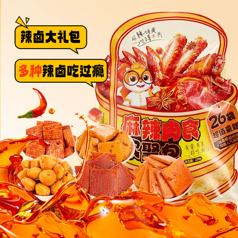 三只松鼠辣卤礼包233g/26袋肉类卤味辣卤大礼包零食即食独立包装