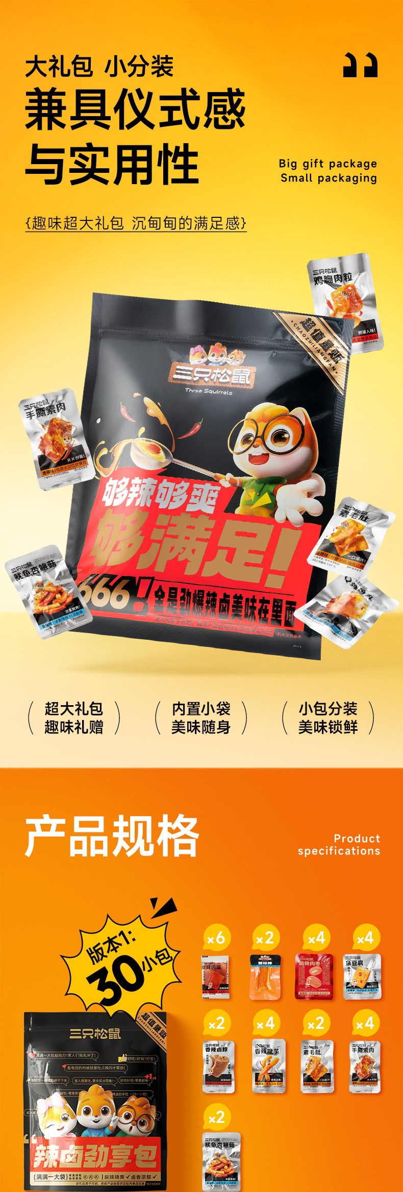 【リス三匹の辛いハロゲンのギフトバッグ60包】カジュアルなスナックのギフトバッグ