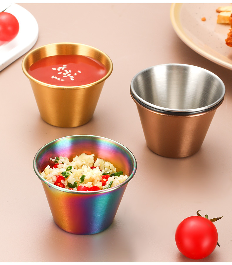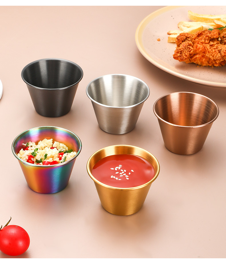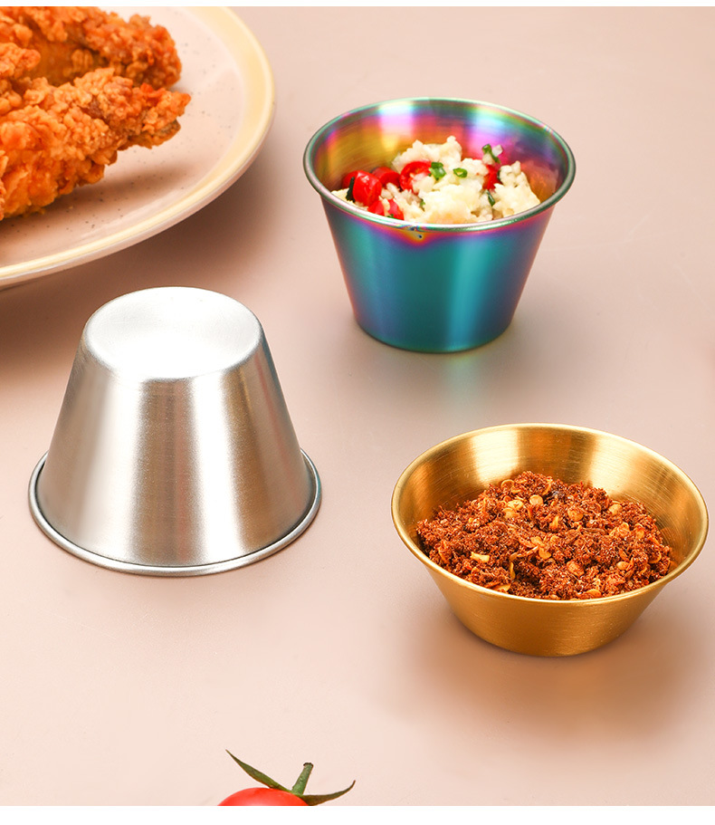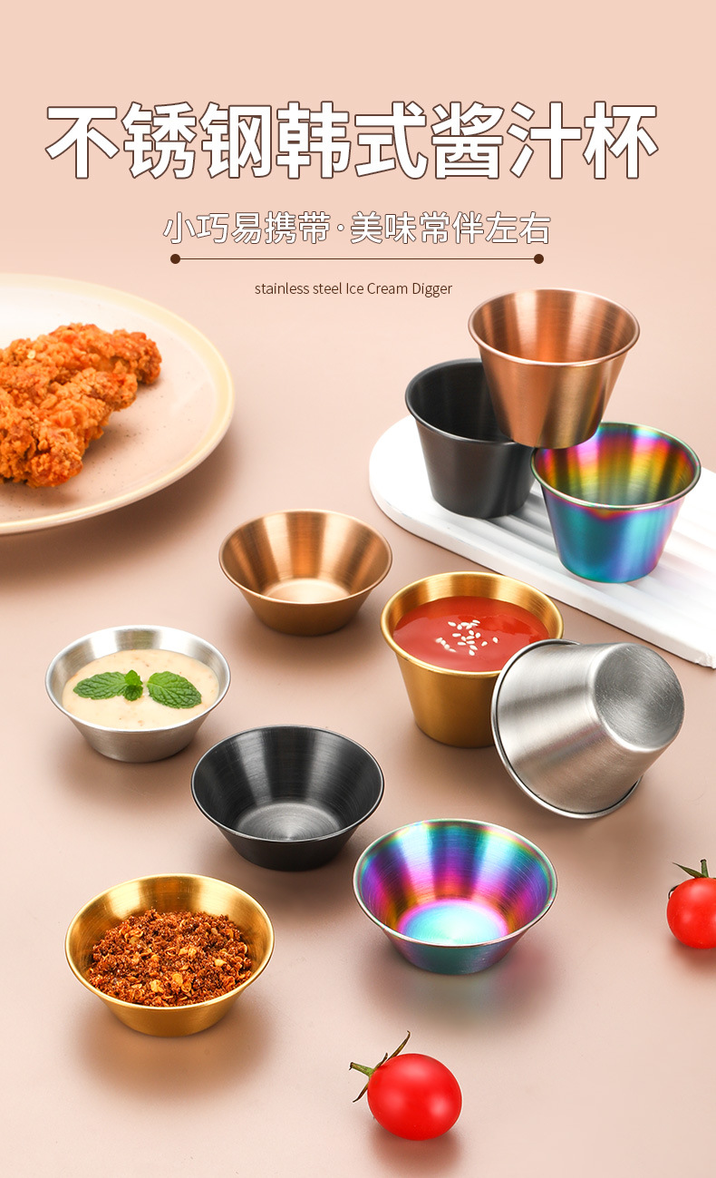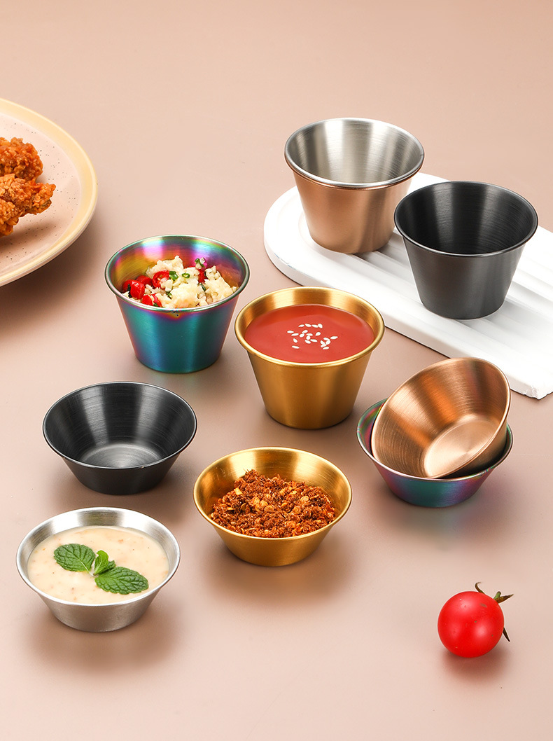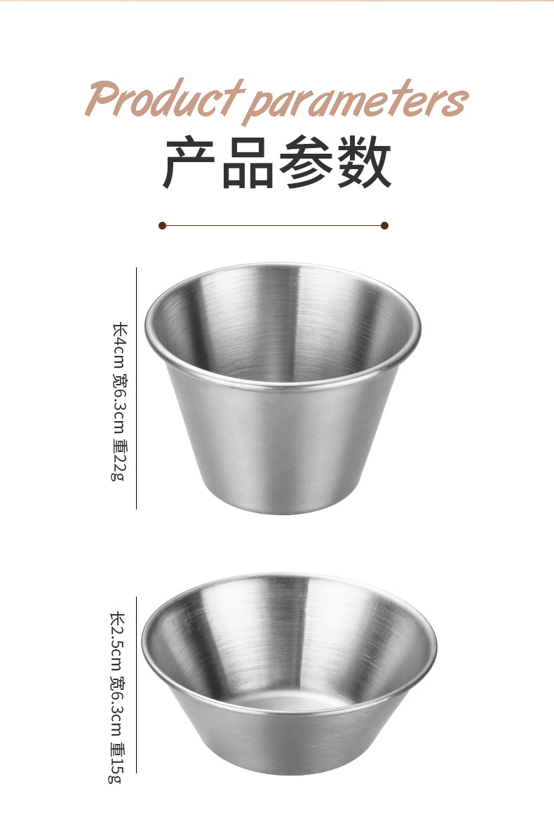 厚みのある304ステンレス製ソースカップ、洋食レストランステーキソースカップ、調味料サラダドレッシング小鉢、トマトディップソース皿